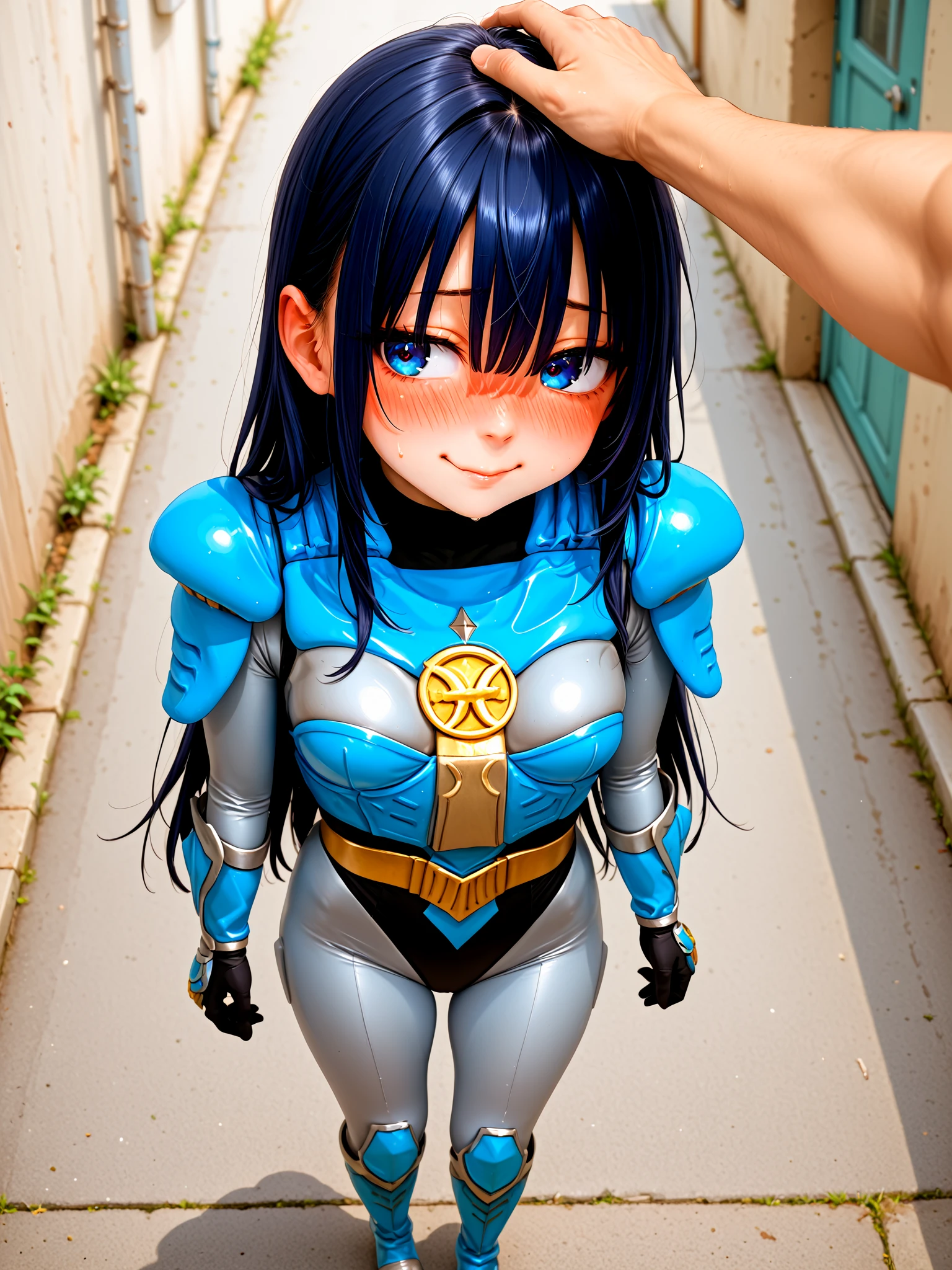 sazerpisces, armor, black leotard, silver bodysuit, belt, gauntlets, black glovesAdd if doing "full body" or "feet out of frame":