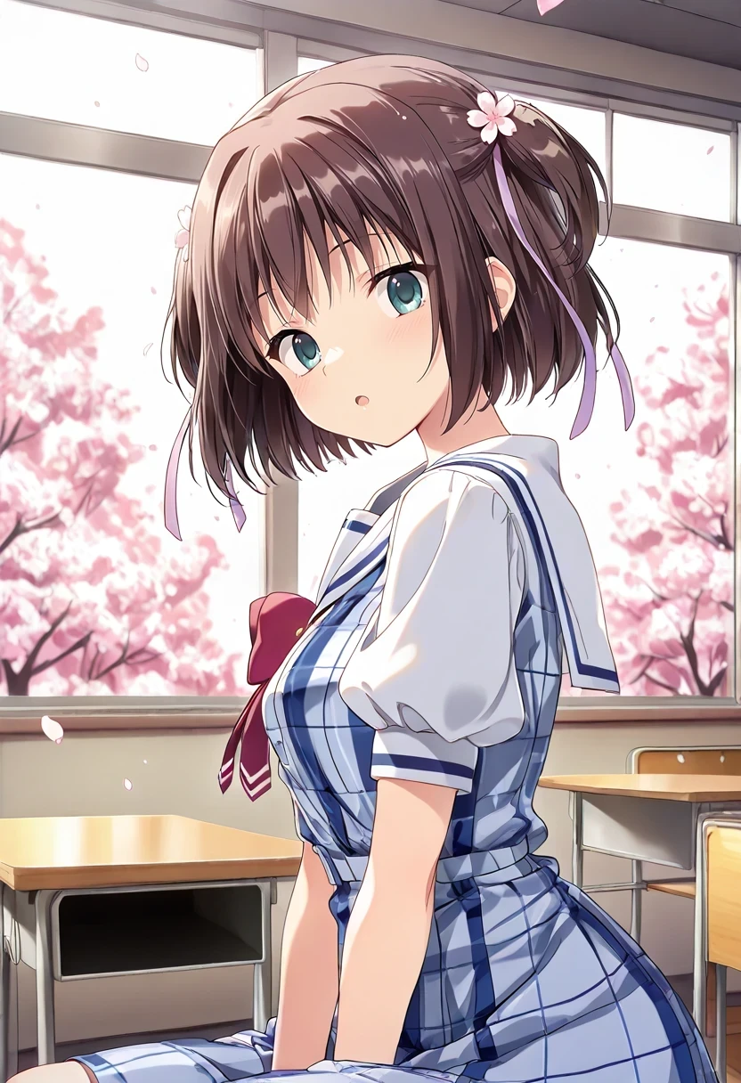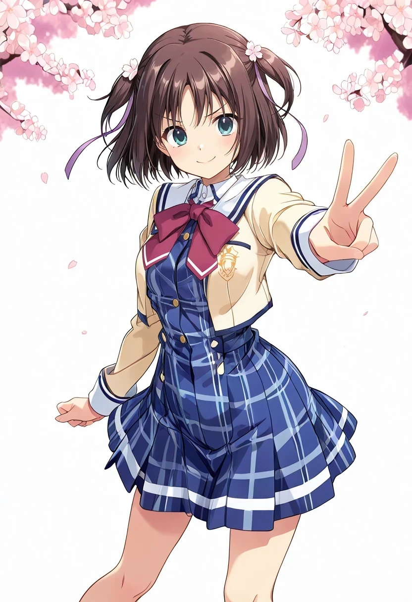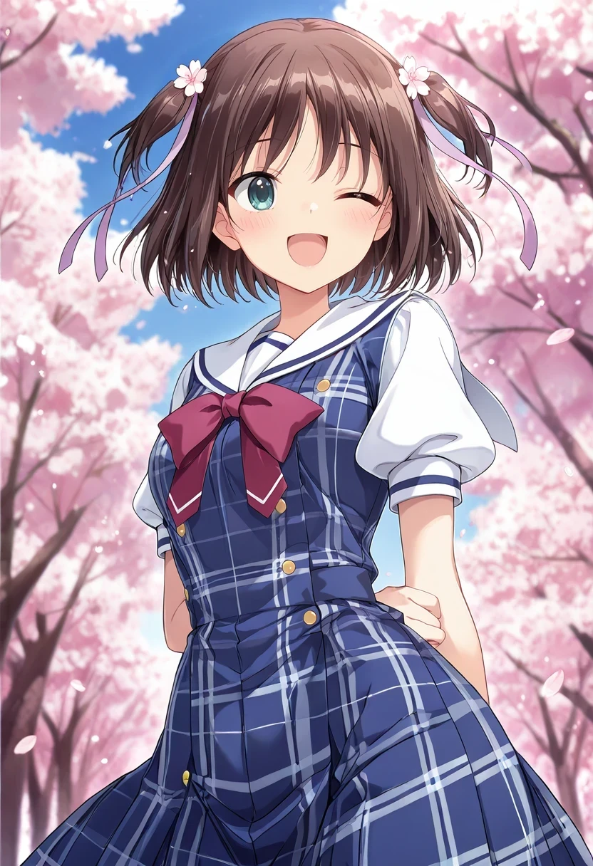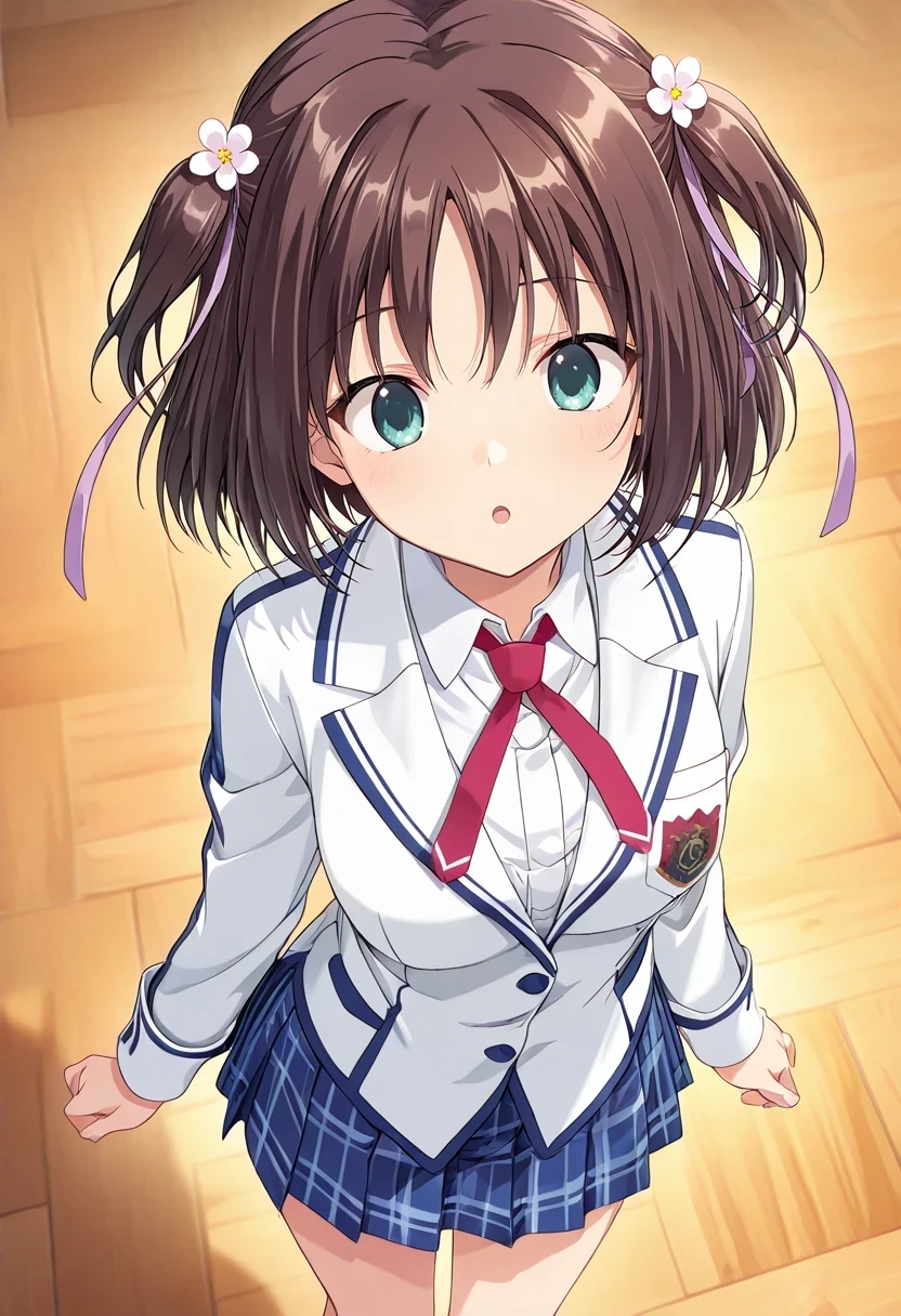 katsuragi himeno,two side up,hair flower,hair ribbon,Winter Uniform: