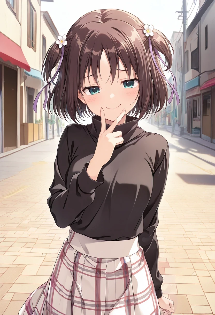 turtleneck,black shirt,long sleeves,white skirt,plaid skirt,Casual2: