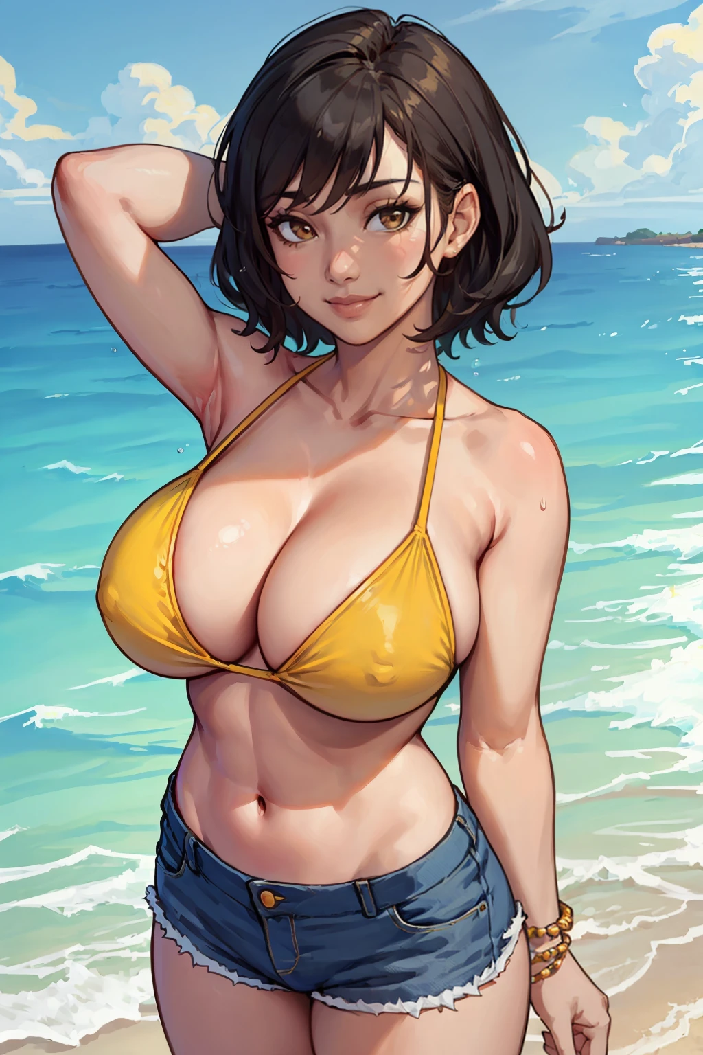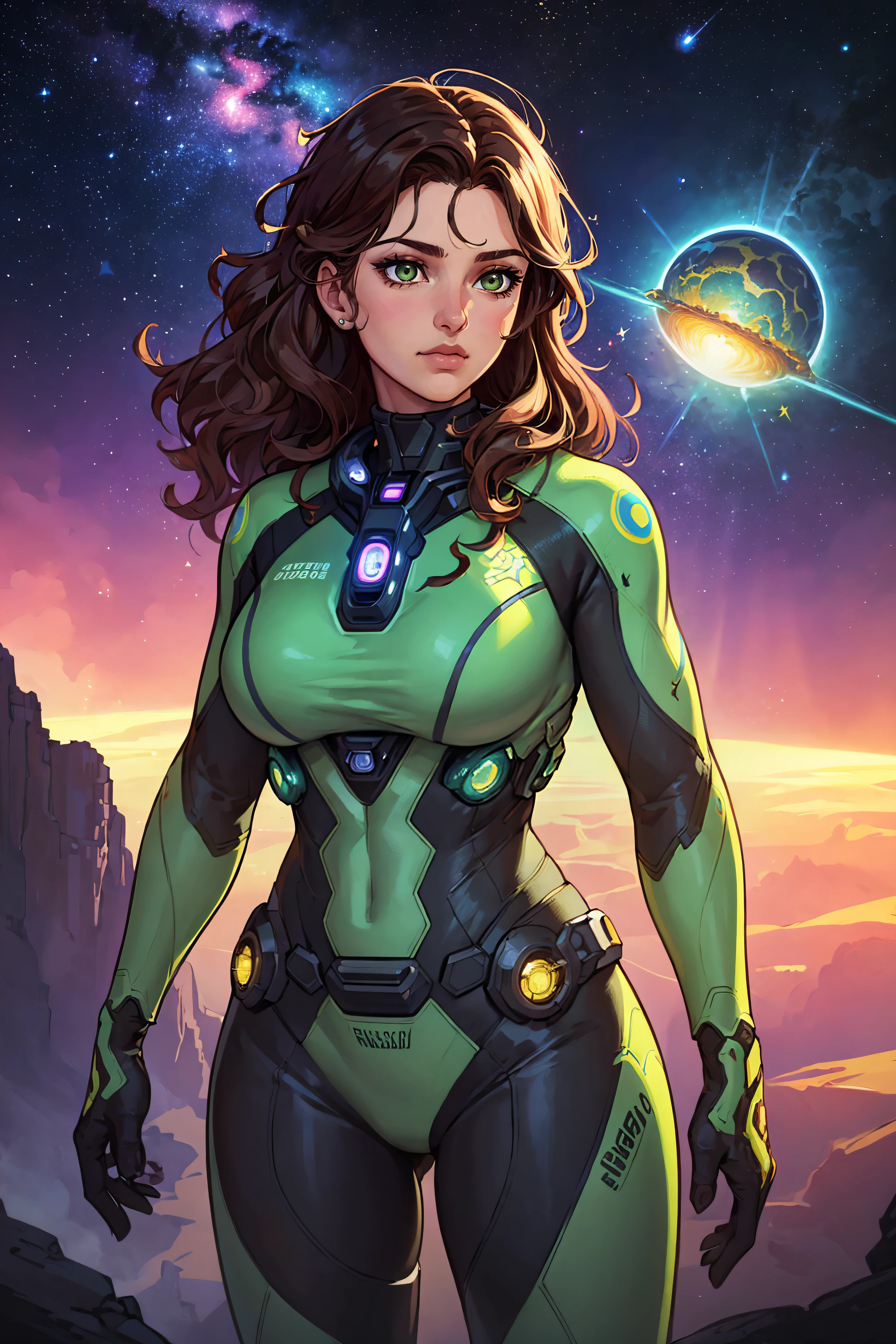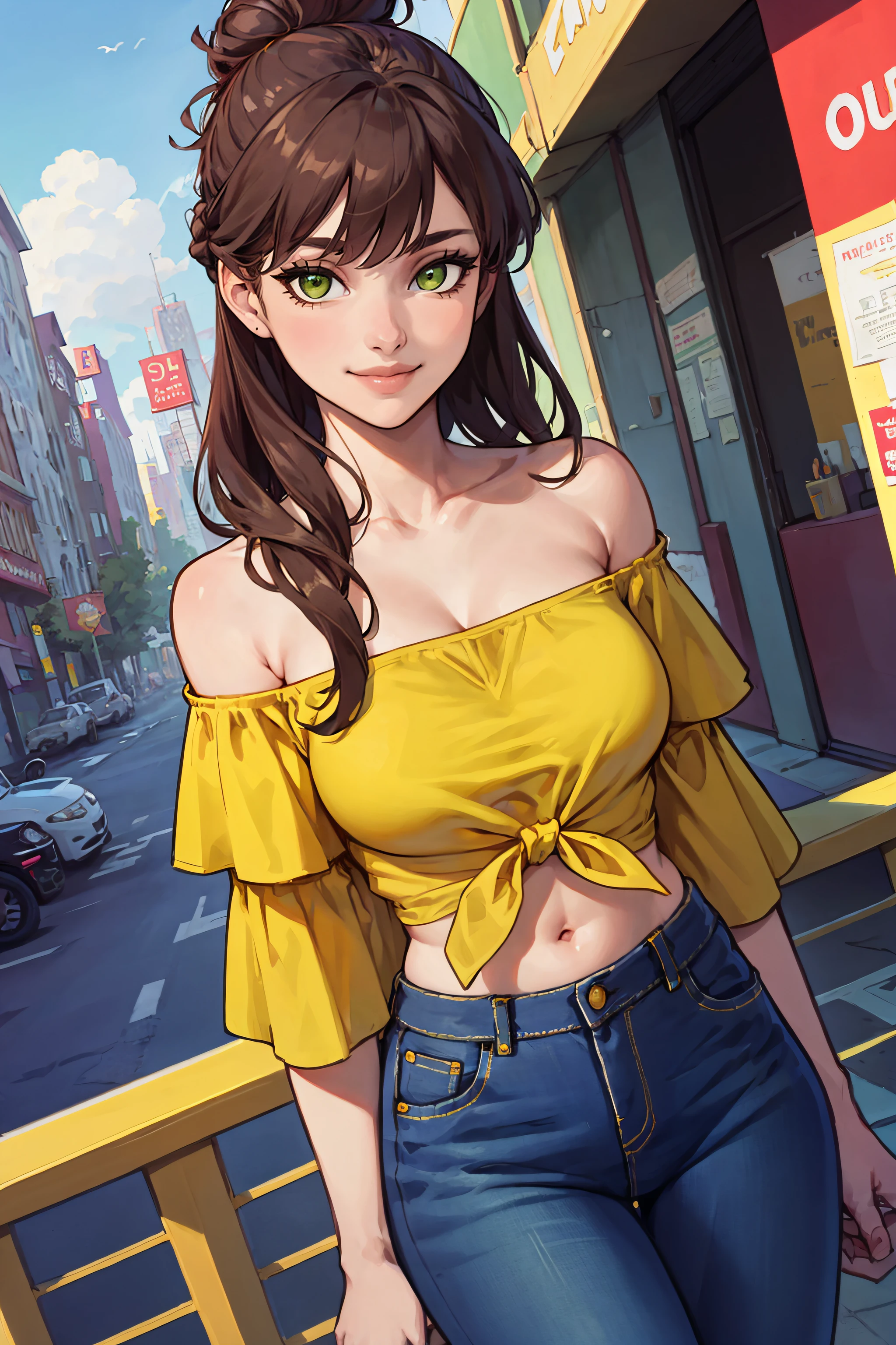 Start with "(masterpiece, highest quality, illustration)". Add "comics style" and/or "thick outlines" to emphasize outlines - note that this also leads to more exaggerated female proportions. "arms by side" helps with keeping messed-up hands out of portraits.