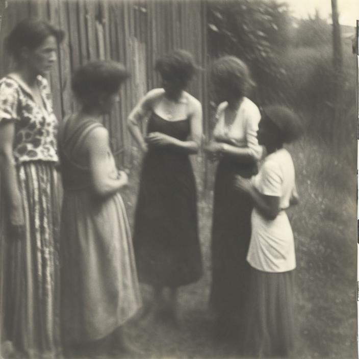 Miroslav Tichy 是一位摄影师,他从 1960 年代到 1985 年,在捷克???的故乡 Kyjov 用纸板筒、易拉罐和其他临时材料制作的自制相机,偷拍了数千张女性的照片。他们中的大多数都不知道自己被拍了。有些人看到 Tichy 时会摆出竞争性的姿势,可能没有意识到他随身携带的相机的模仿品是真的。写一些简单的提示(因为数据集很小),并且不要忘记触发器 “photo by Miroslav Tichy”。