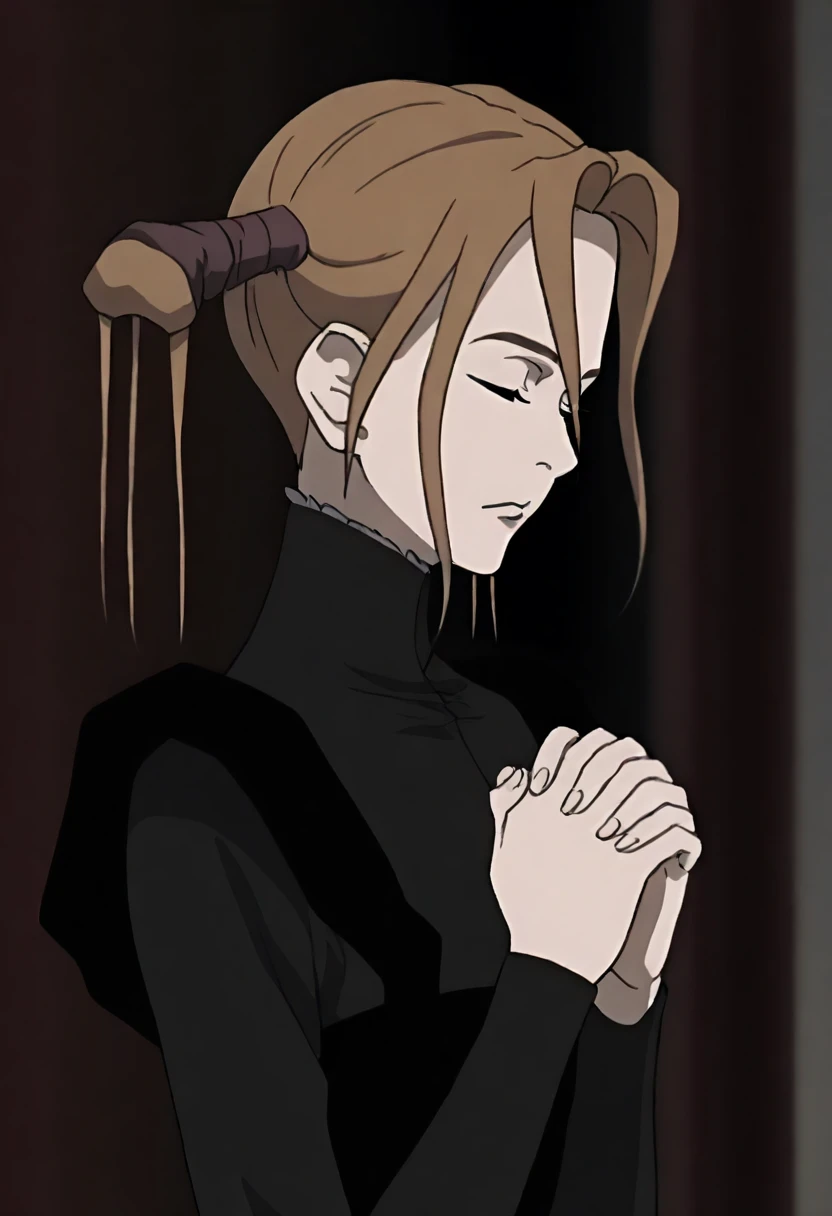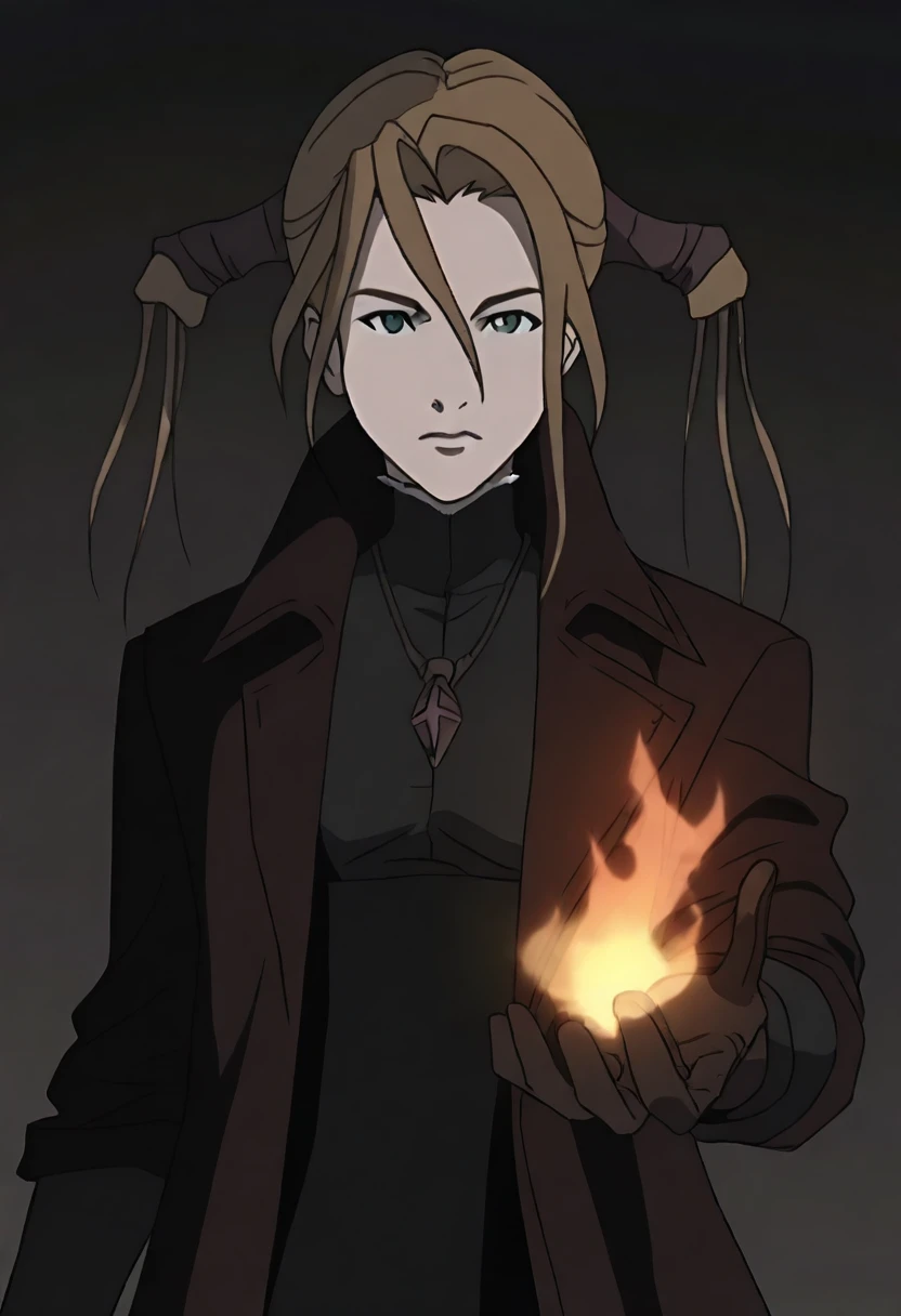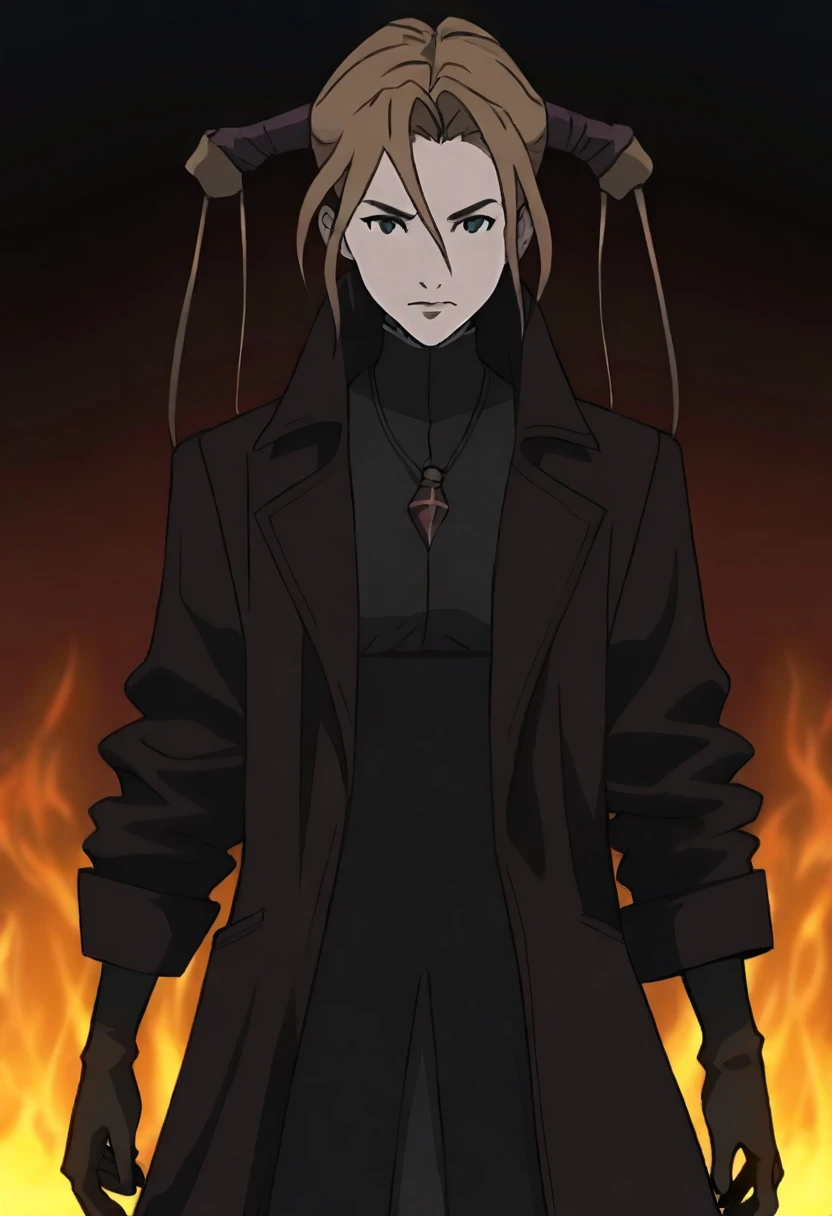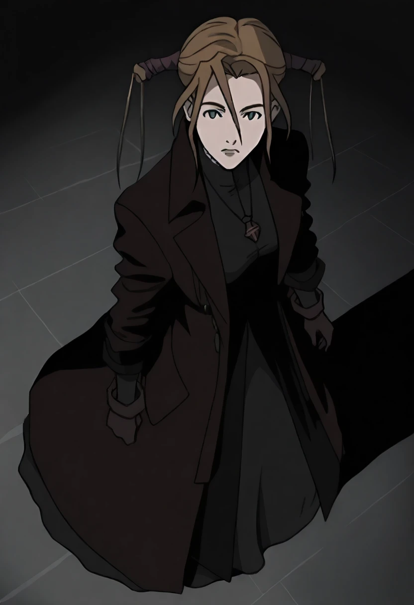 robin sena, overcoat, black dress, gloves, necklace