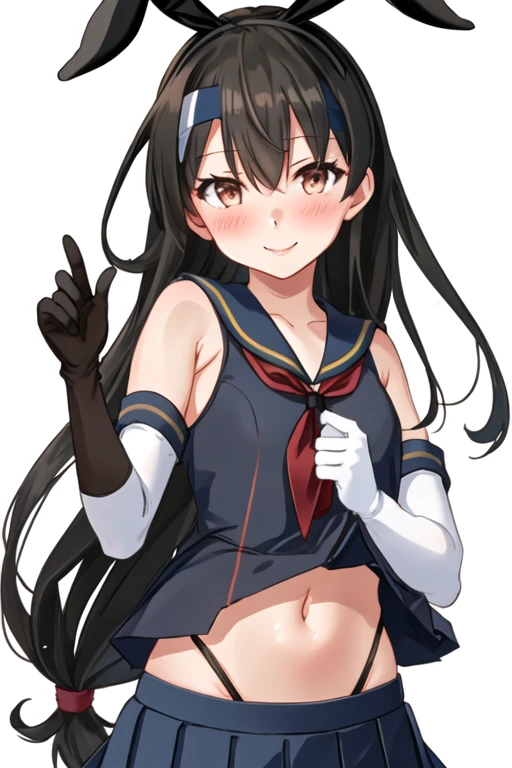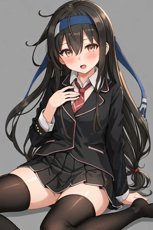 The trigger word is hatsushimo_kantaicollection, and the recommended tags are best quality, masterpiece, highres, solo, {hatsushimo_kantaicollection:1.15}, black_hair, long_hair, headband, red_eyes, blush, blazer, blue_headband, hair_between_eyes, low-tied_long_hair, brown_eyes.