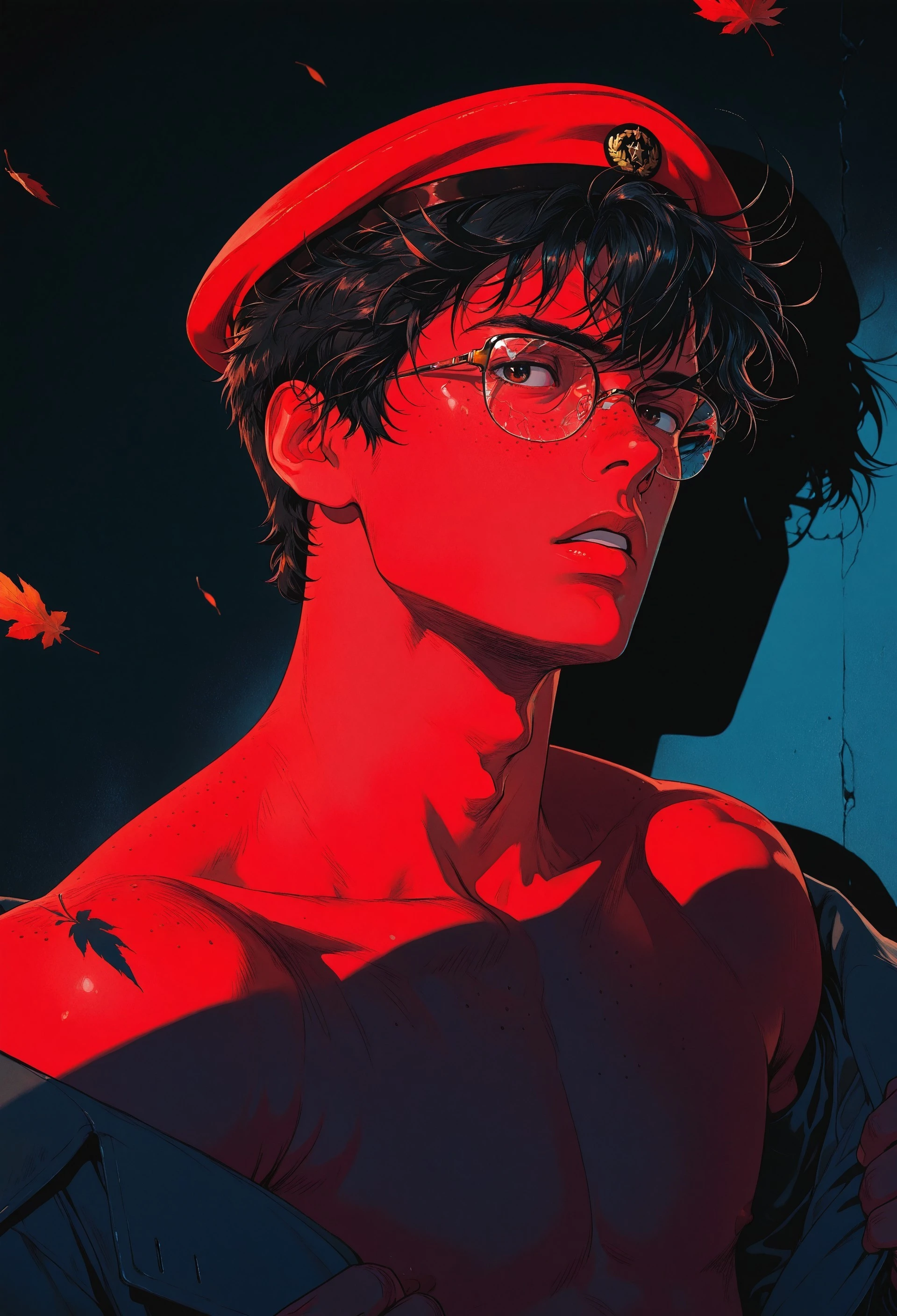 "Color": "red" and "blue" dramatic light, "yellow" and "green" color scheme,