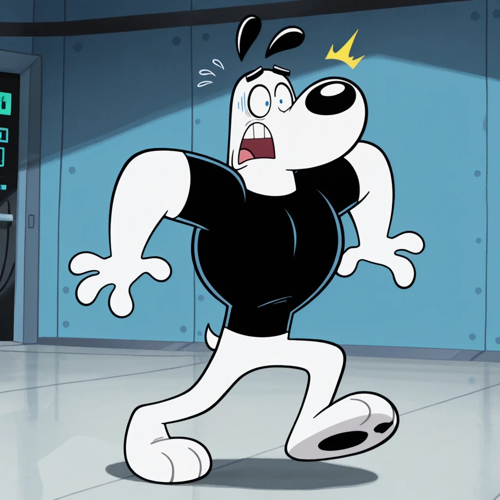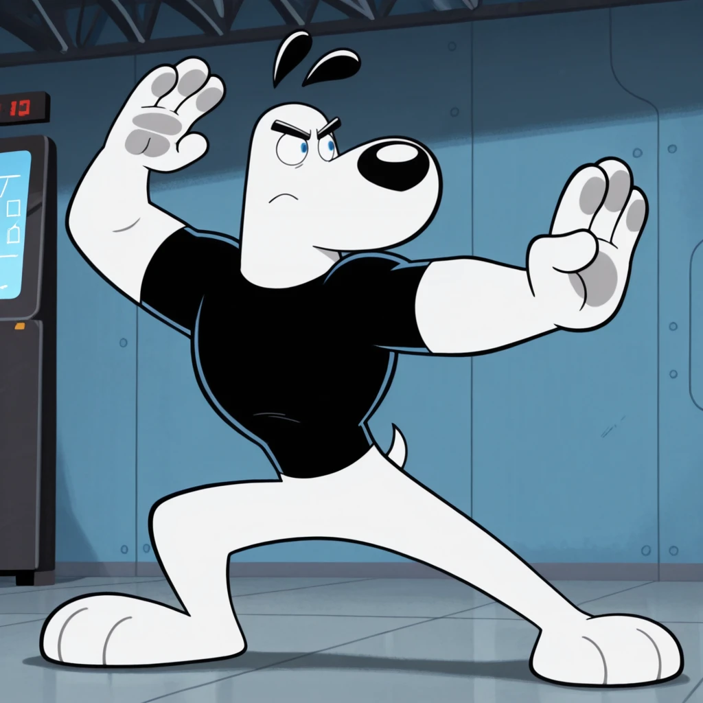1boy, male, furry, anthro, dog, solo, white fur, blue eyes, thick eyebrows, black nose, black ears, short tail, pawpads, muscular