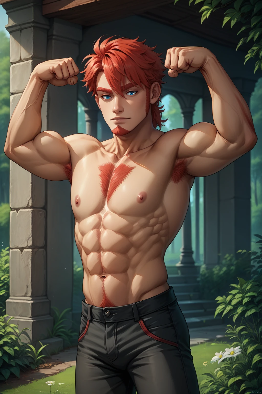 Main prompts: NSArloPortia, red hair, blue eyes, goatee