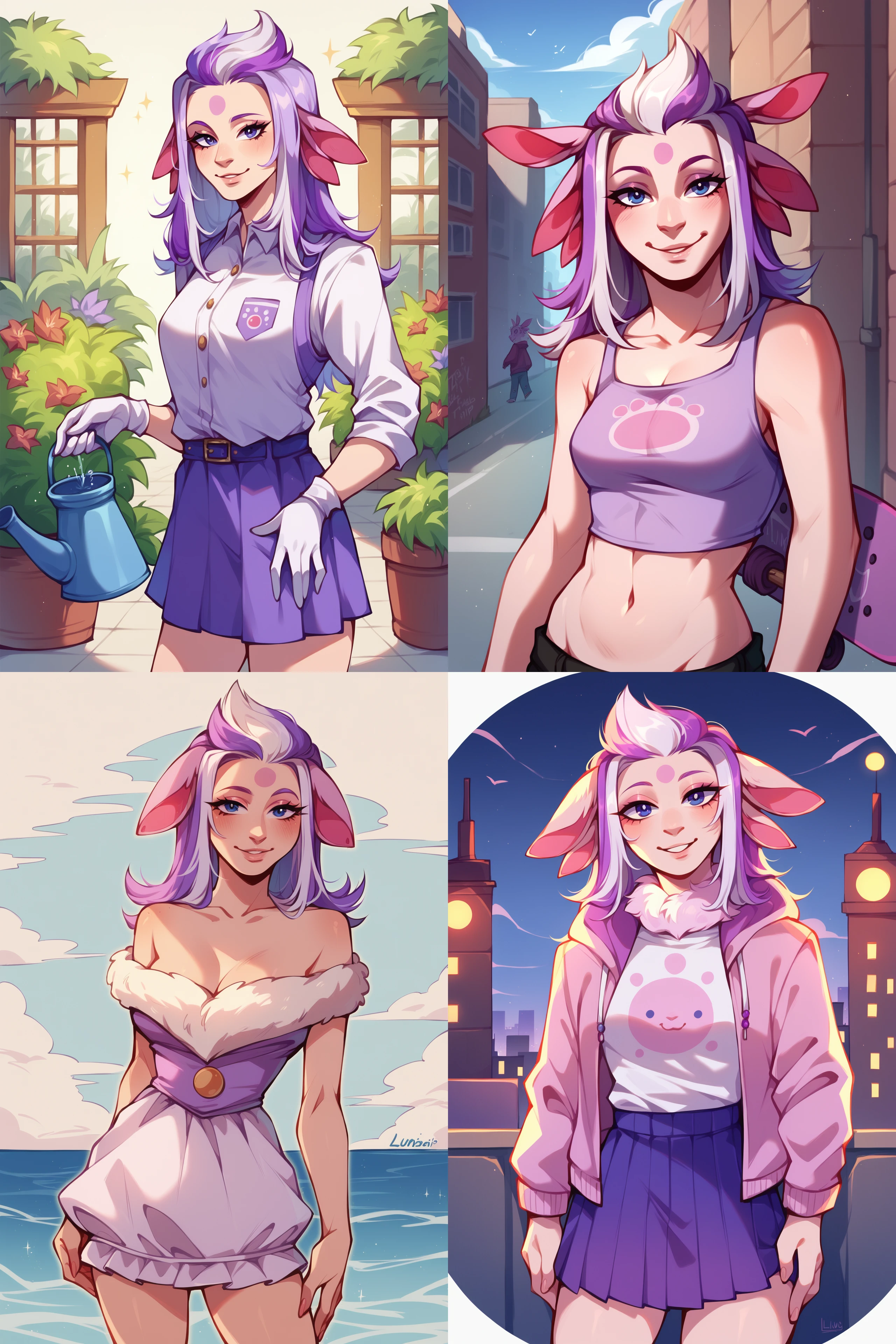 Дефолтный образ - как в мультике, для получения других образов нужно дописывать промпт. Для более стройной версии используйте thin body, для хуманизации стоит добавить в негатив snout. Ушей должно быть 4, но это не совсем стабильно, зато LoRA достаточно гибкая.