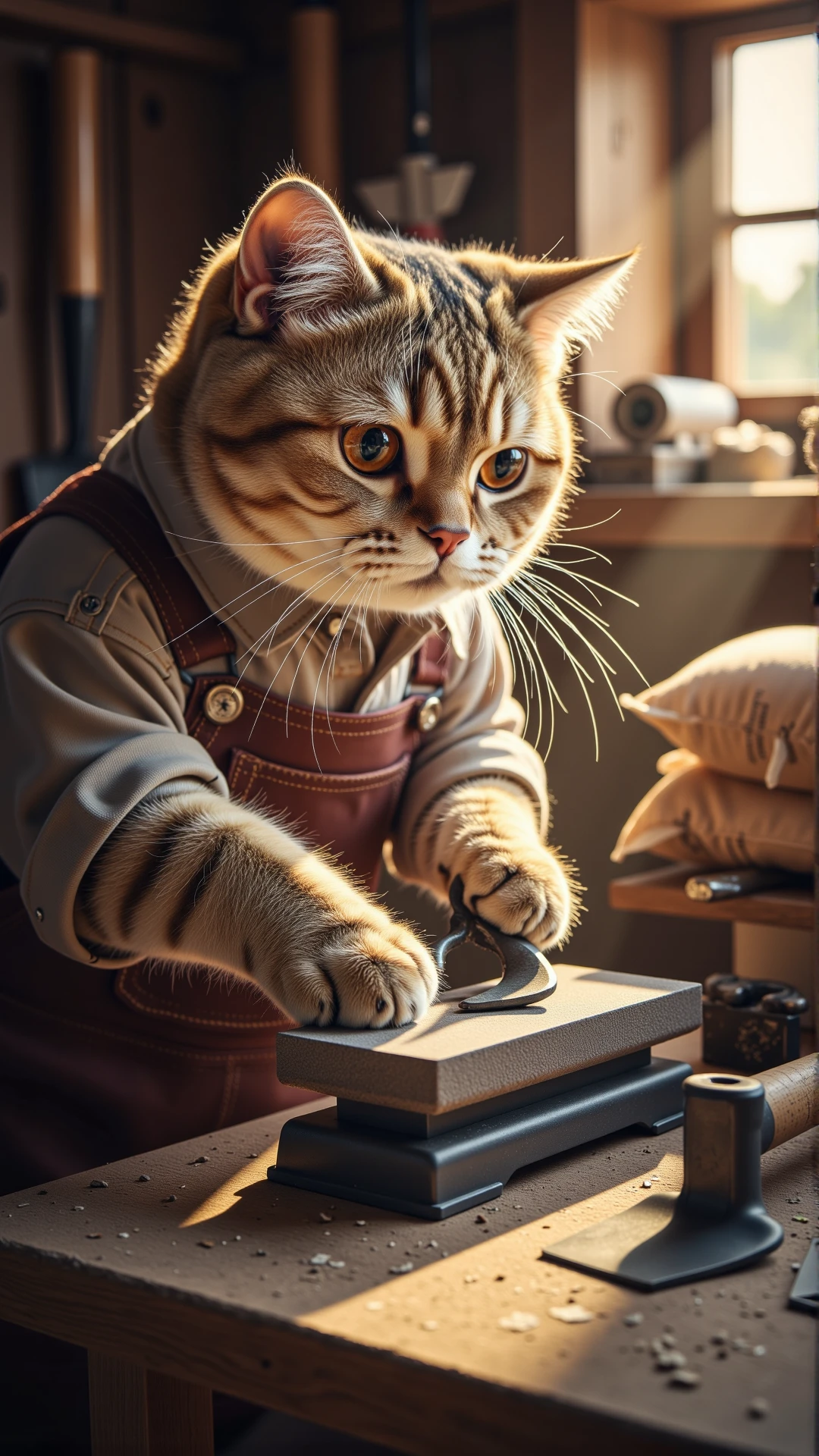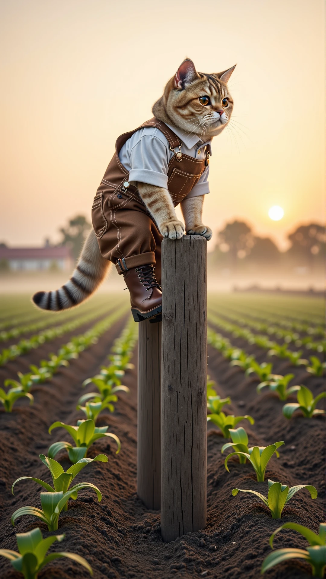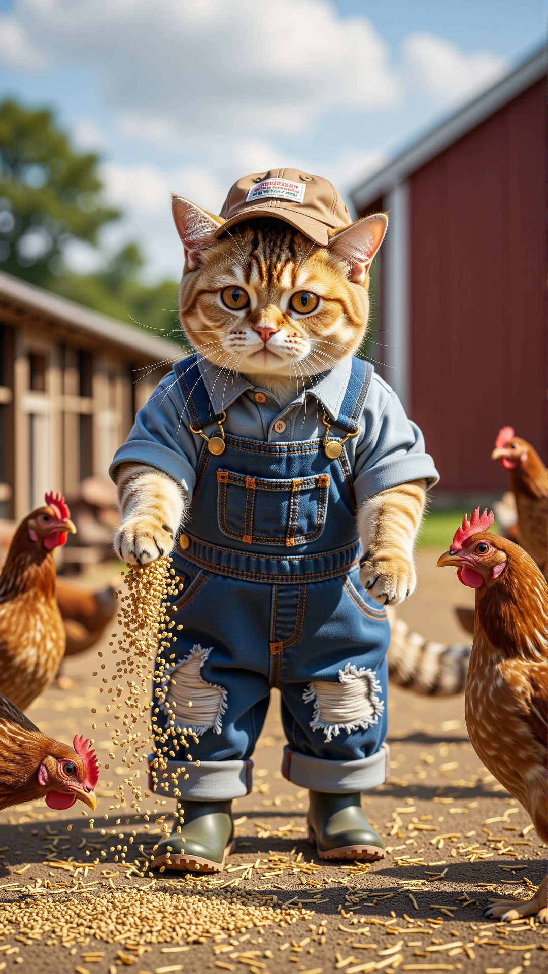 Subject details: British Shorthair - wears farmer's clothes and works like a farmer (Anthropomorphic cat)