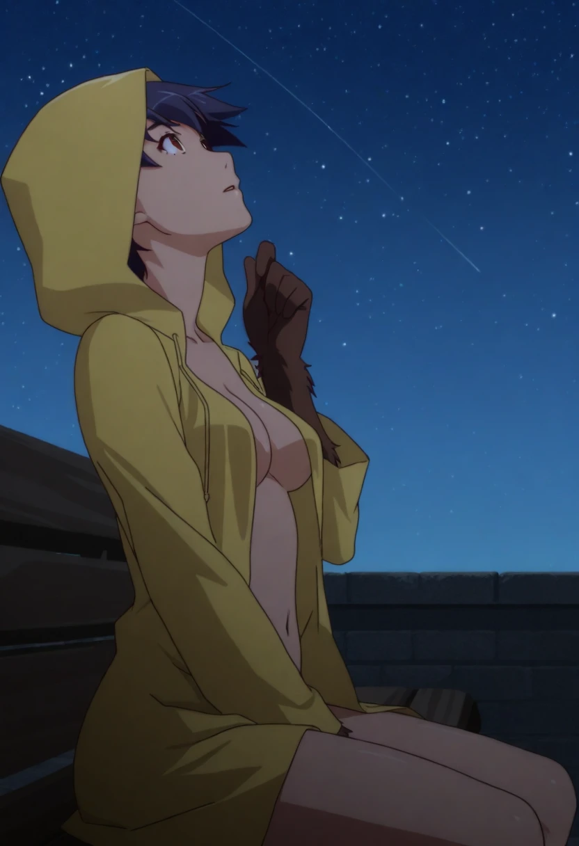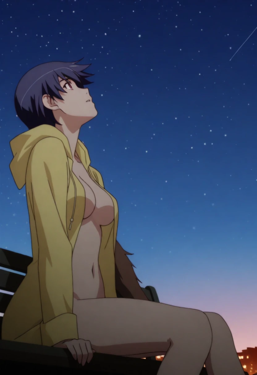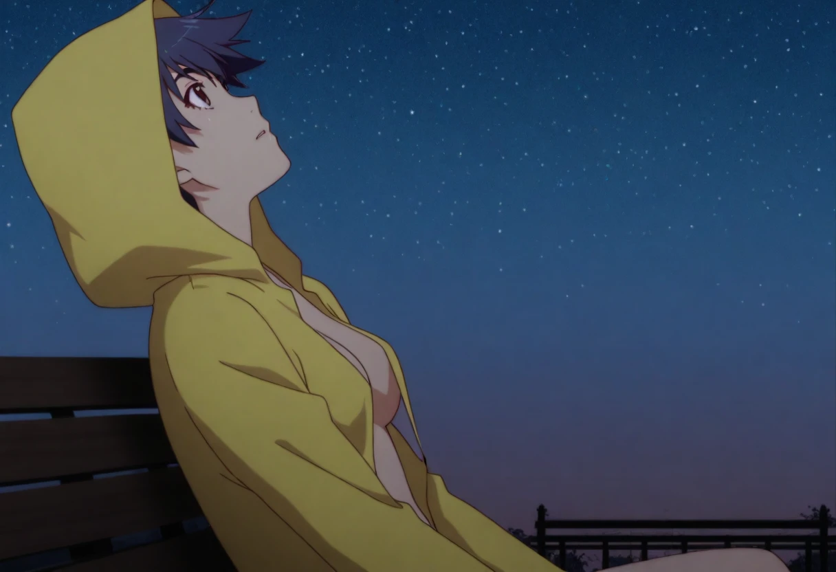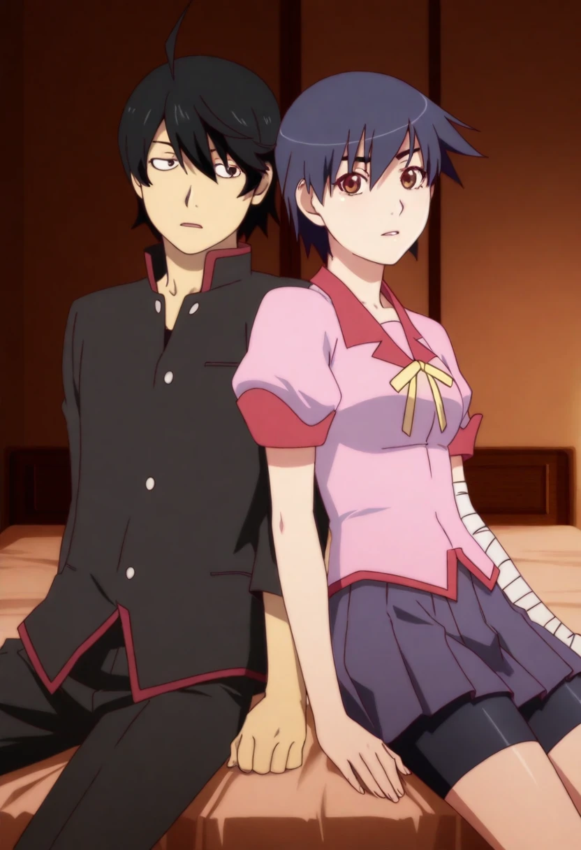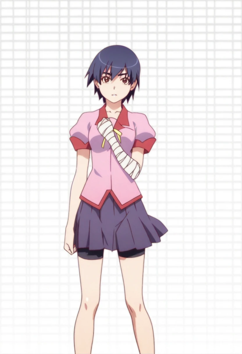 1girl, kanbaru suruga, short hair, dark blue hair, brown eyes,