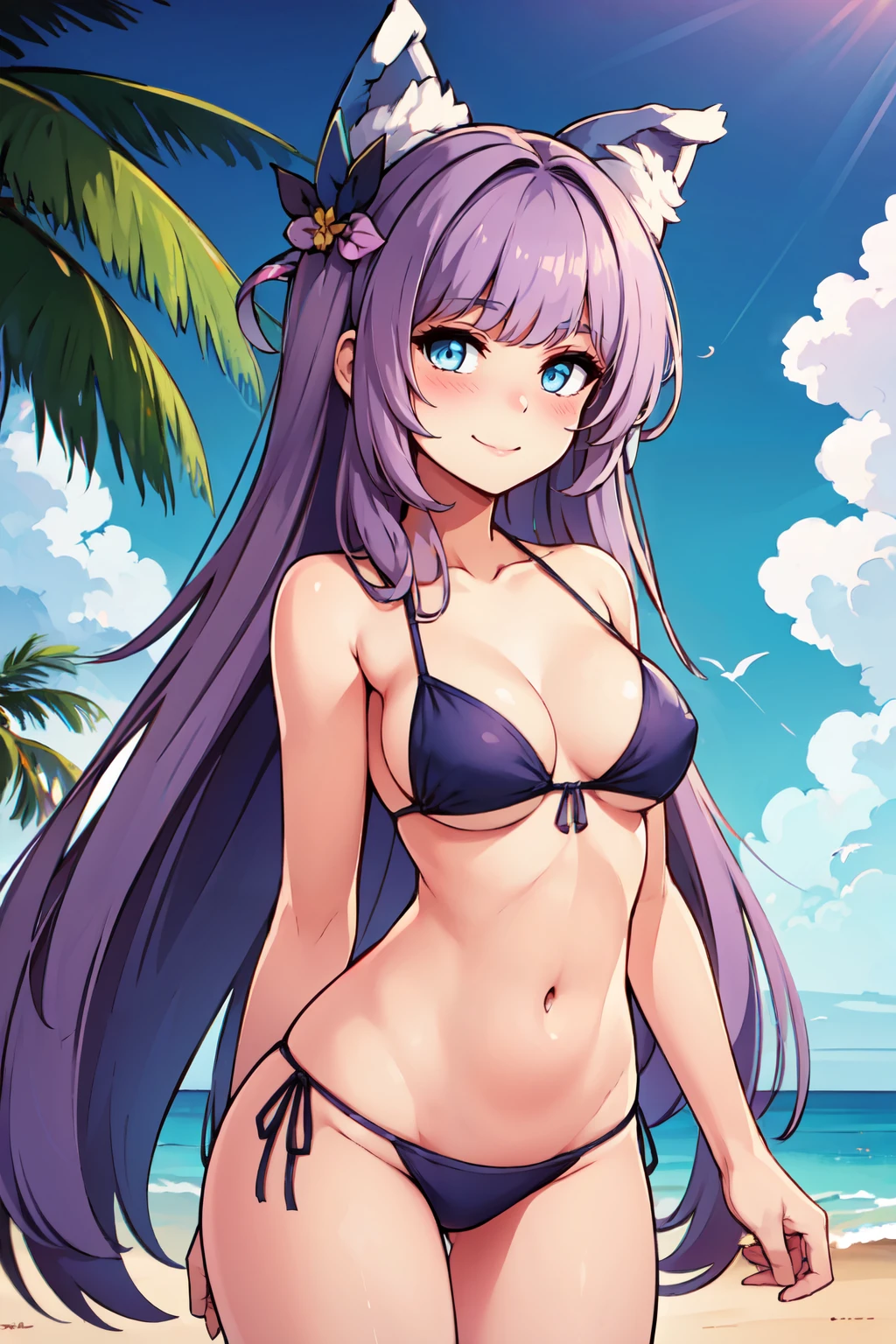 zzTashkent, long hair, purple hair, blue eyes, very long hair, bangs, animal ears, ribbon, hair ribbon, fake animal ears, hair ornament,