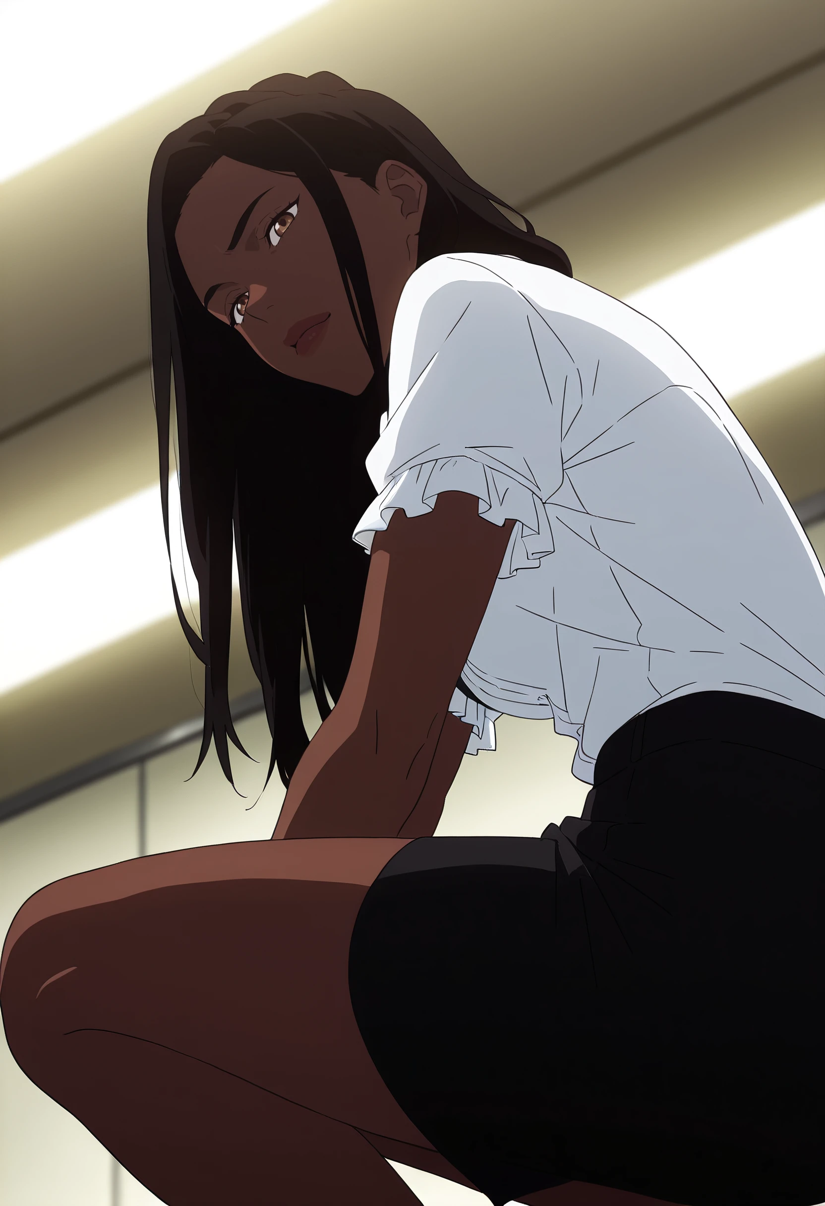 SCDZinnia, black hair, brown eyes, long hair, dark skin, dark-skinned female, very dark skin,