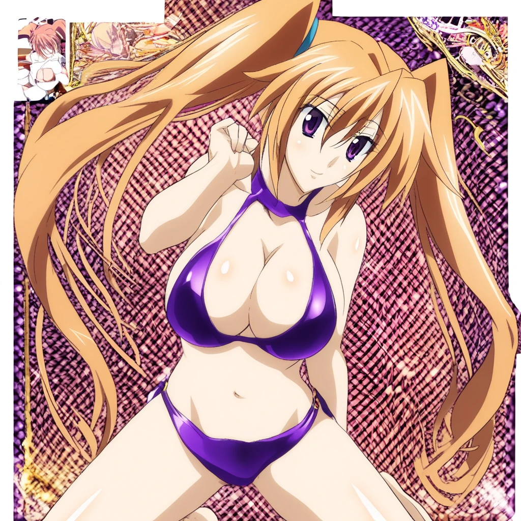 irina shidou, long hair, brown hair, twintails, purple eyes, very long hair, ahoge,