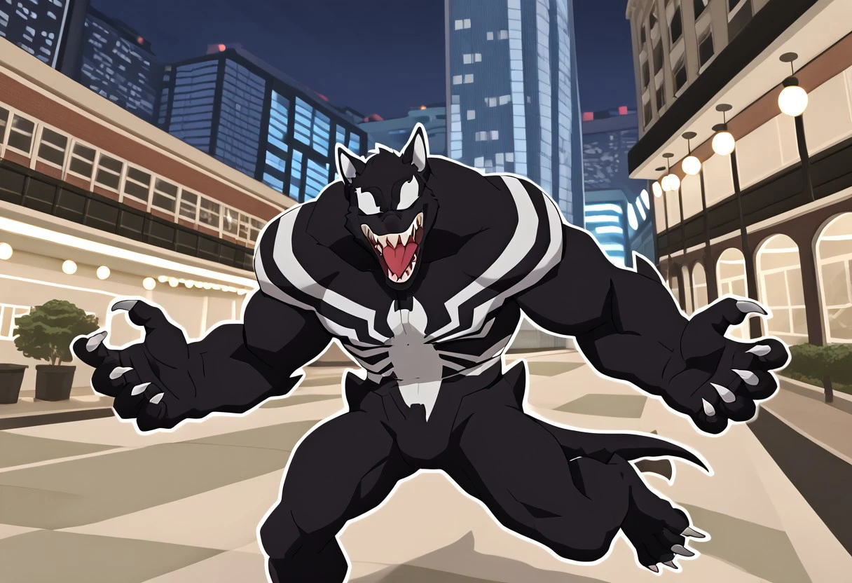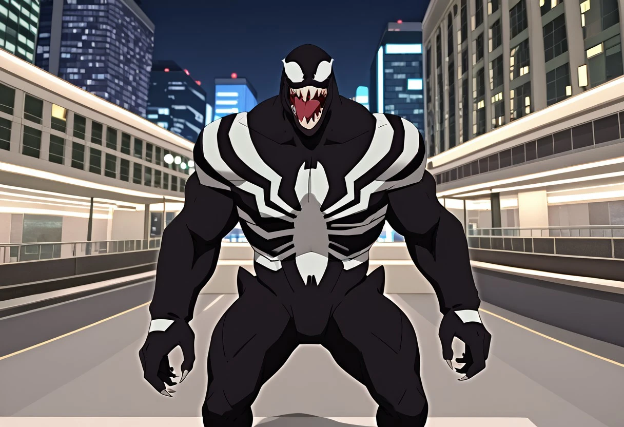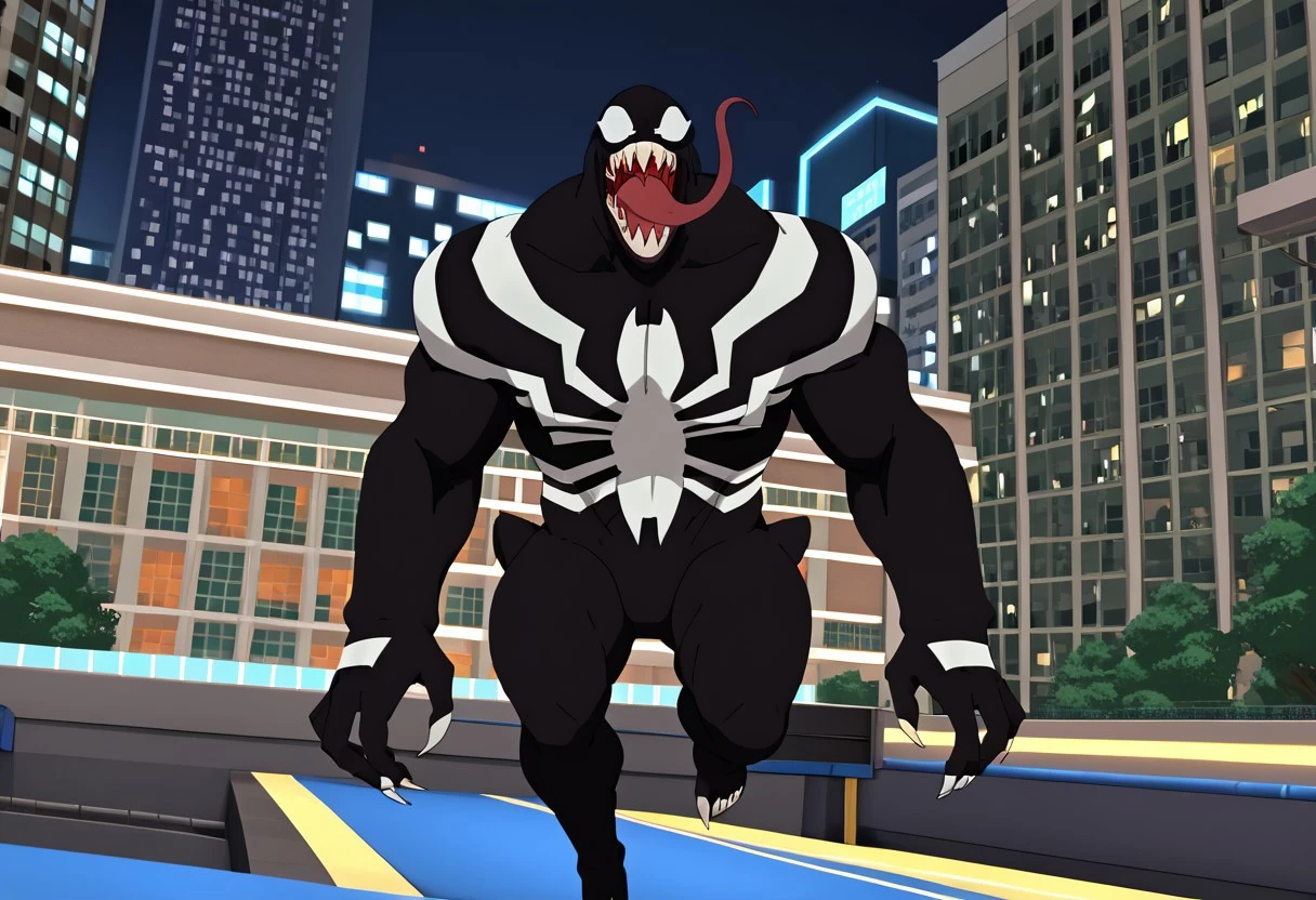 venom2017maximum/(marvel)XL, symbiote, blacksuit, bodysuit, mouth, sharp_teerh, long_tongue, muscular, 1boy, solo, spiderprint,Prompt Venom "Maximum Venom" Illustrious:
