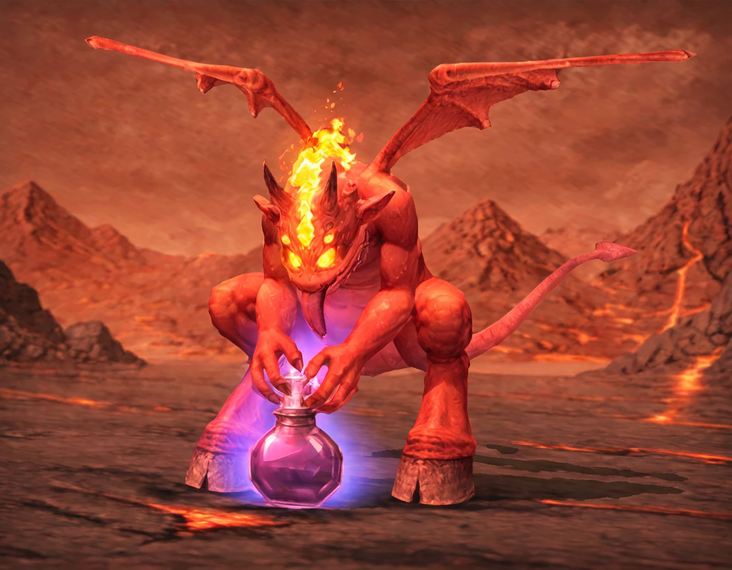 Reinforcement Tags: red skin, burning eyes, balb, burning head, horn, wings, spiked collar, hooves
