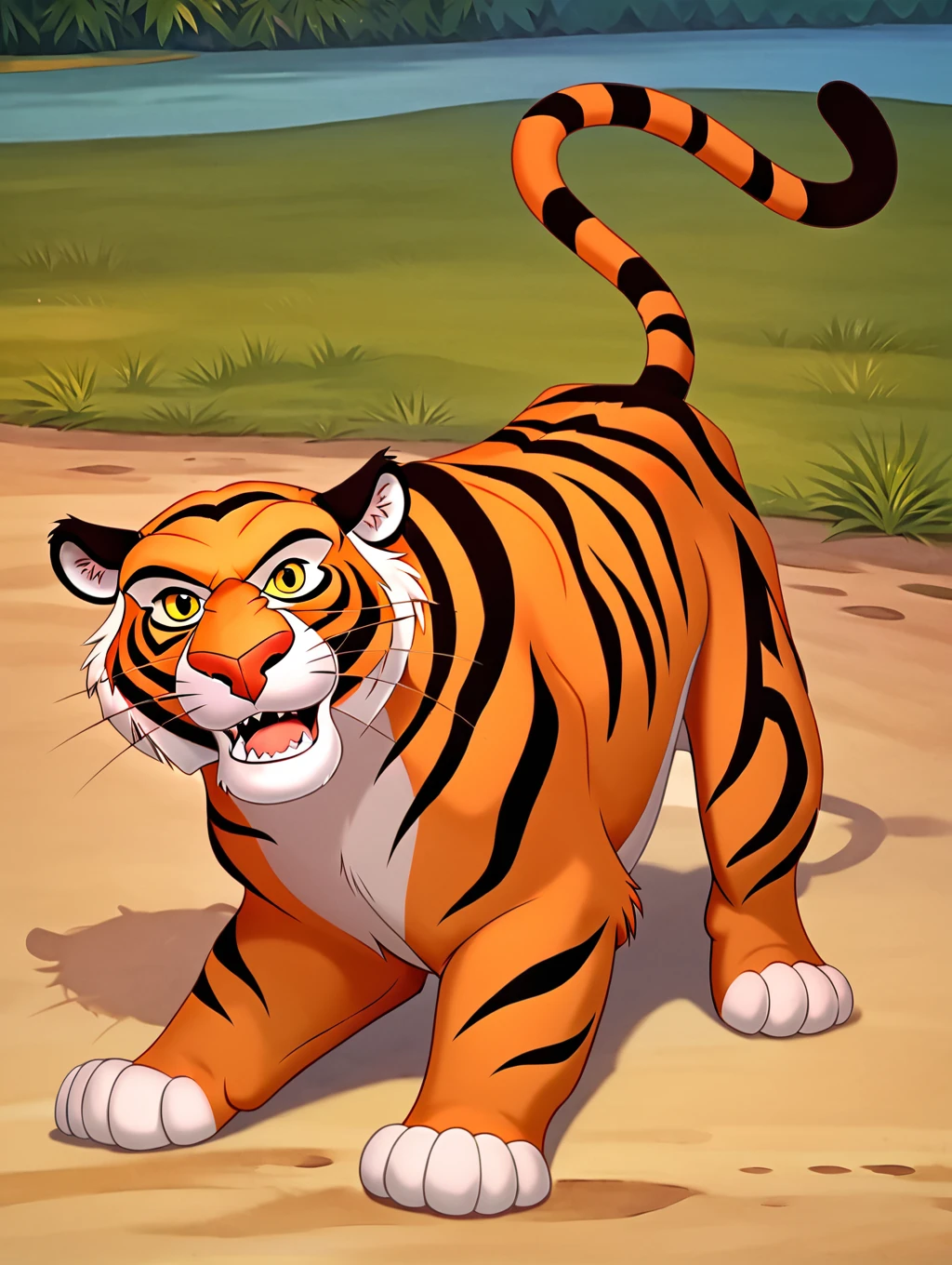 rajah, tiger,tiger ears,tiger stripes,whiskers,yellow sclera,black eyes,