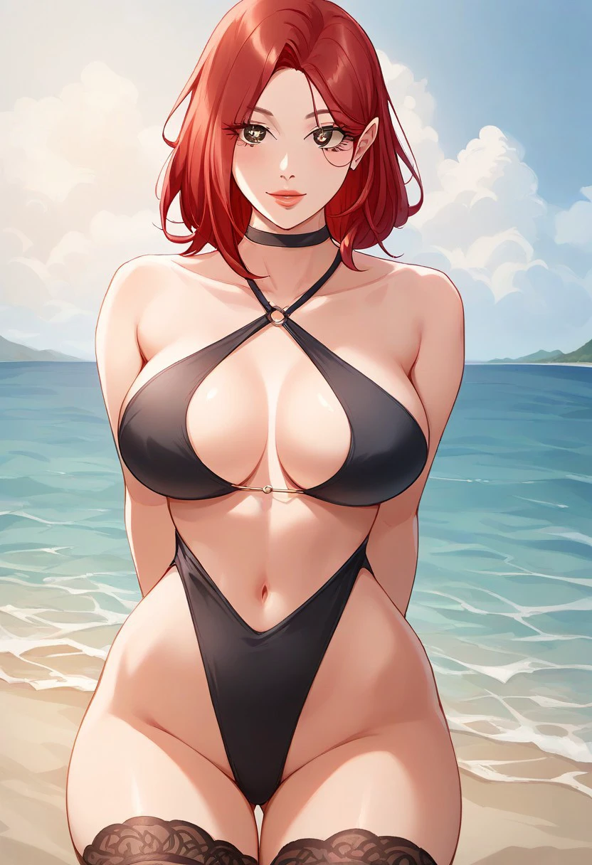 (( <lora:kim_su-kyung:1> , kim_su-kyung, beautiful brown eyes, clear eyes, bright pupils, beautiful eyes, beautiful red hair, beautiful medium bob haircut, huge and shaggy breasts, thin waist, wide hips, beautiful skin, natural beauty, extraordinary beautiful woman, attractive woman, super sexy woman, lustful body, sexy woman with seductive obscene body, sensual body, voluptuous body, sexy beauty, )),