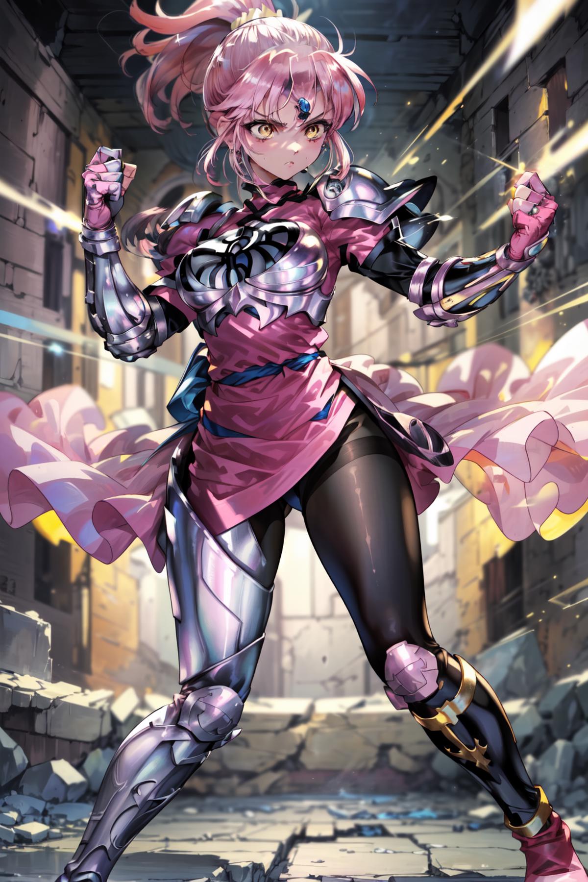 Best weight to use is around: 0.8-1. This is actually an older model I made before bettering my dataset building, so getting the respective outfits of her Gauntlet Armor and Martial Arts Outfit can be a little iffy. No Priest or plain clothes.