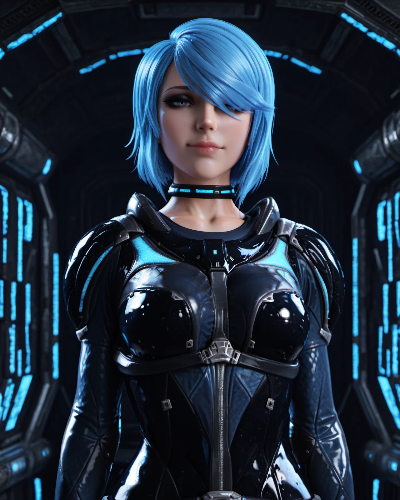 choker, spacesuit, shiny futuristic outfit,