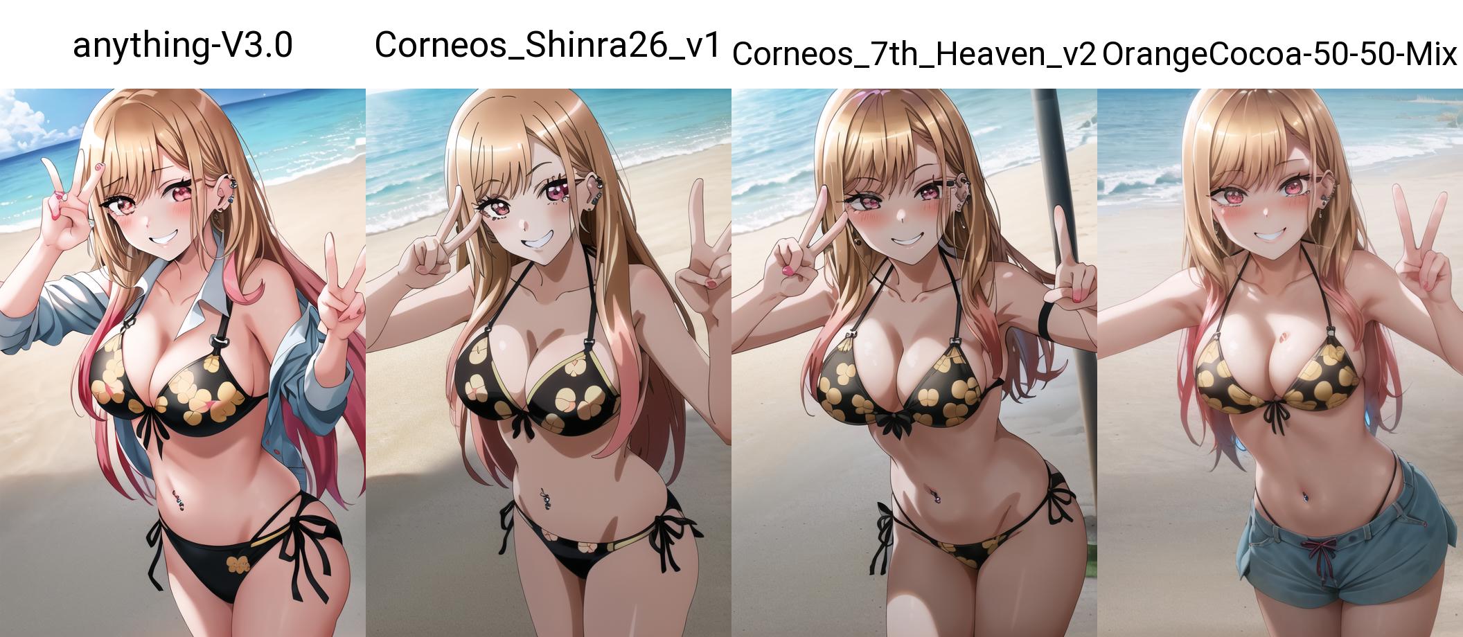 The comparison images were all generated using the Anything v3 VAE and no hypernetwork.