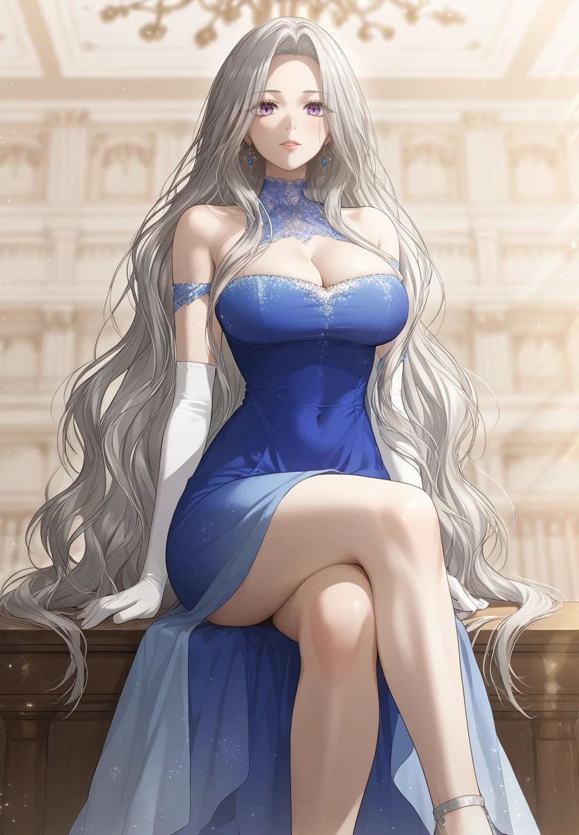 Prompt: persepe, 1girl, grey hair, purple eye, very long hair