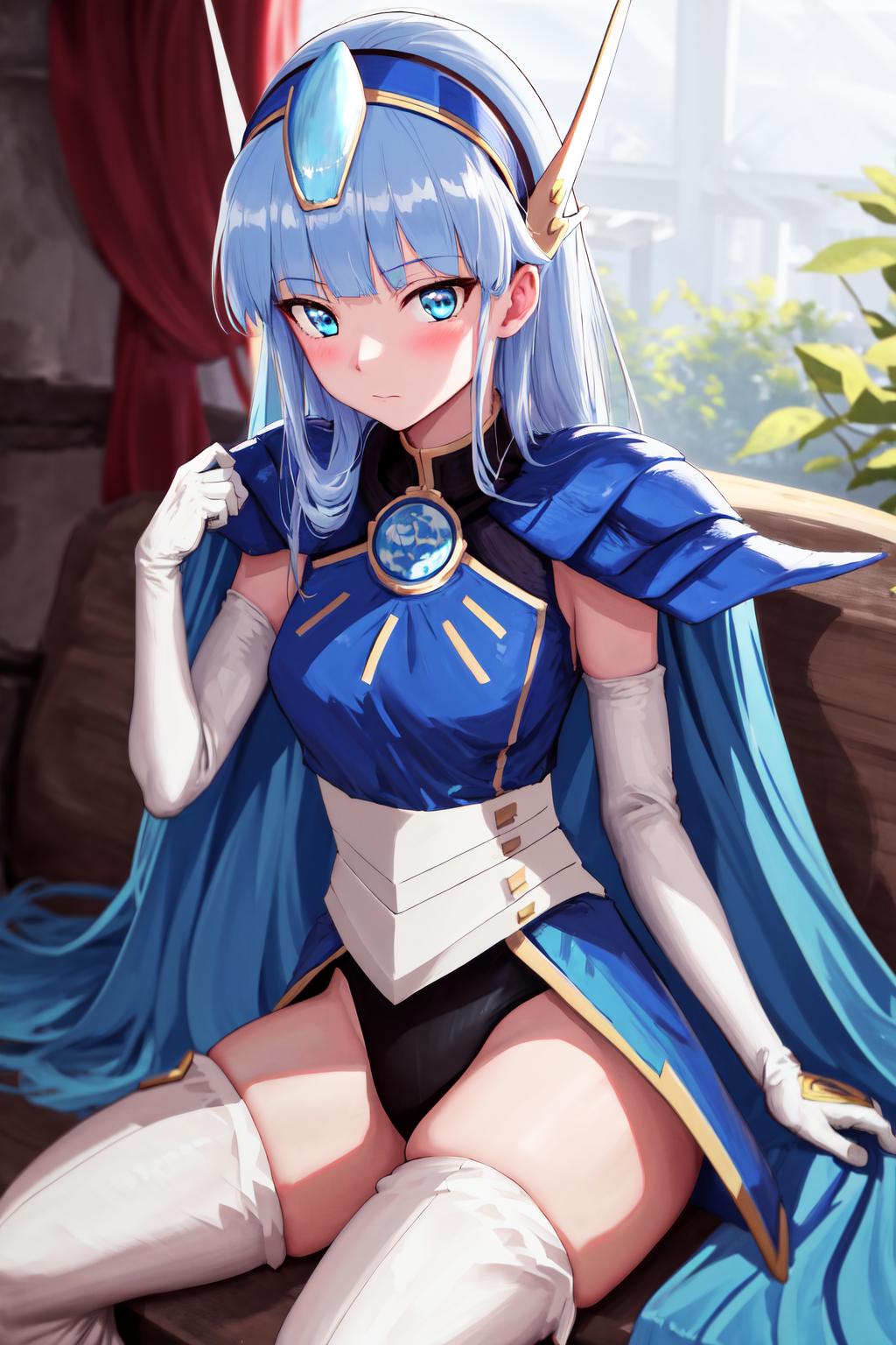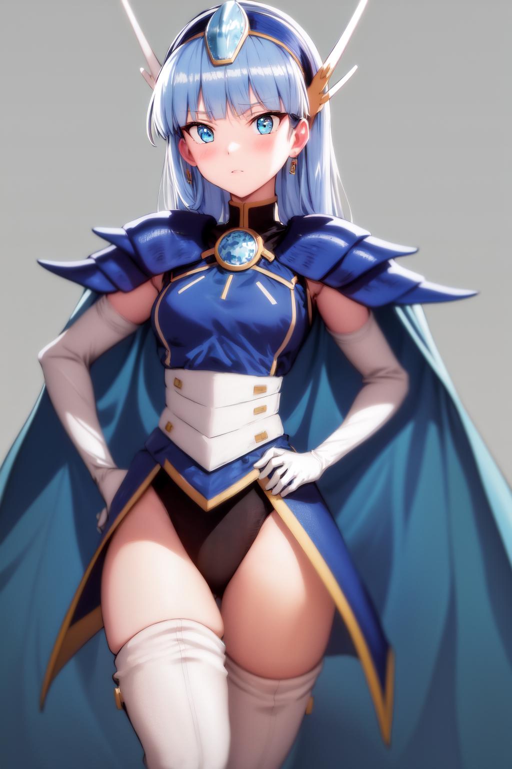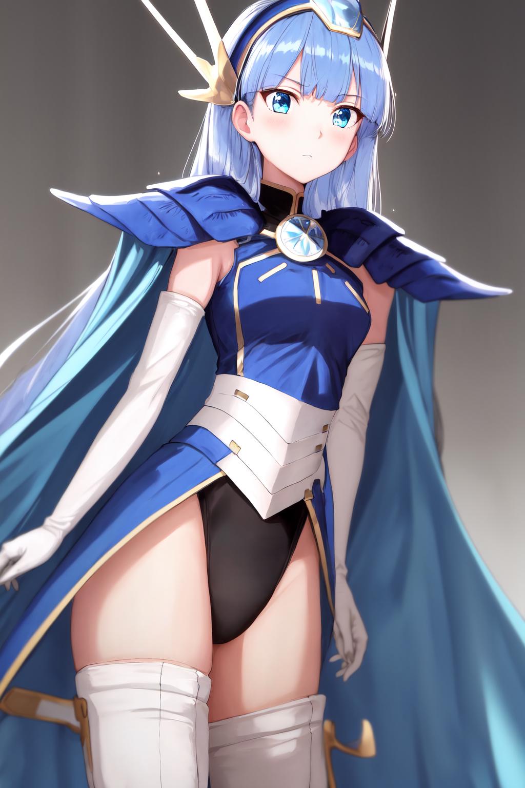 • Trigger with default outfit: 1girl umi ryuuzaki hairband headgear, blue armor shoulder armor blue cape elbow gloves leotard white thighhighs