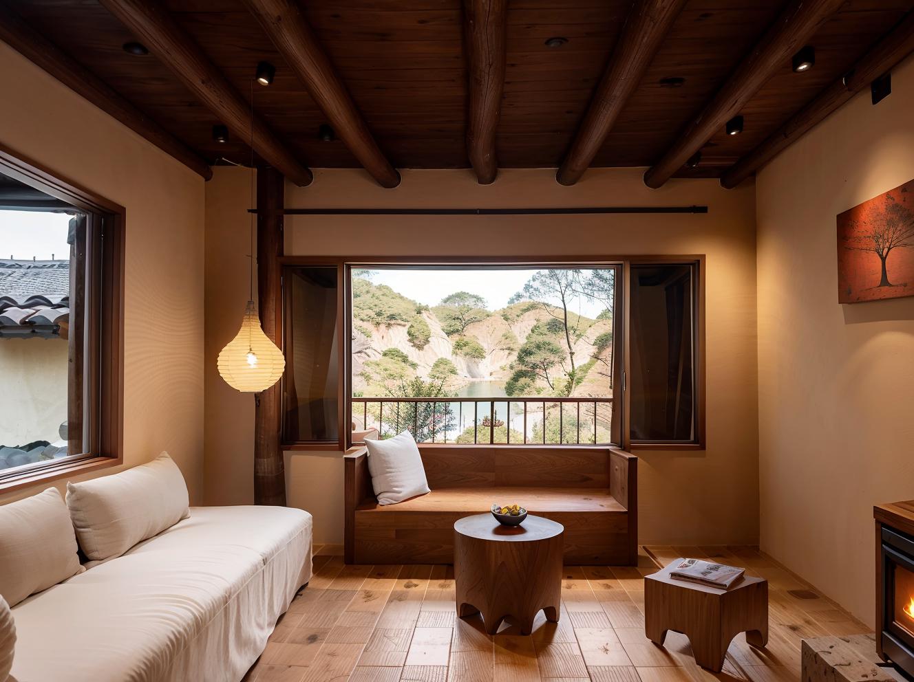 BSindoor, no humans, scenery, chair, table, lamp, indoors, window, pillow, tree, couch, bed