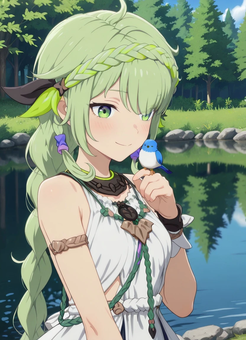 Airona, green hair,hair braids,bangs,long braid,green eyes,