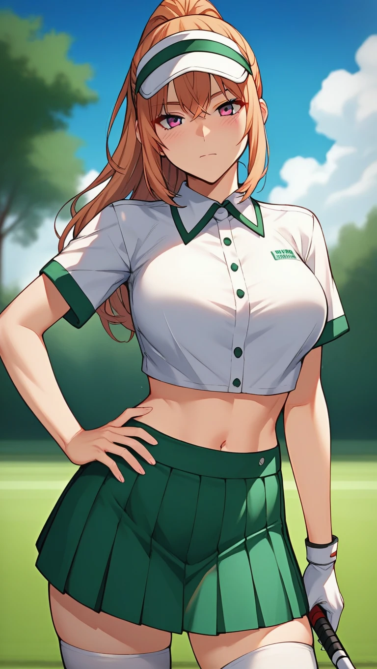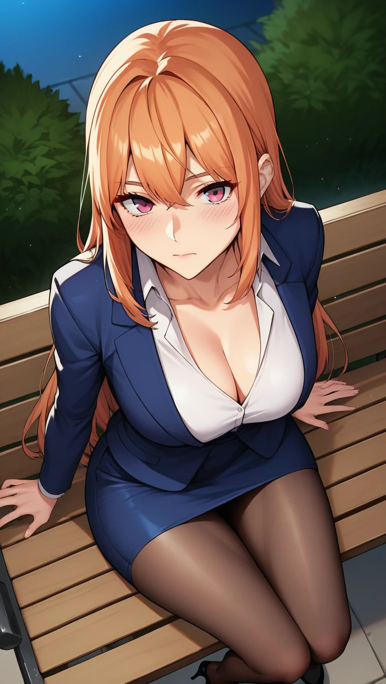 long hair, bangs, orange hair, pink eyes,