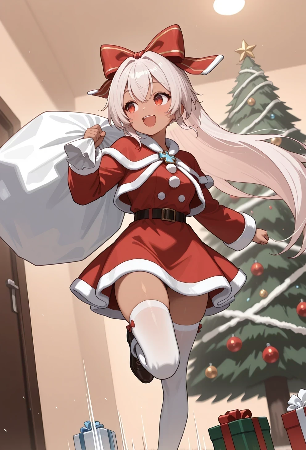 santa costume,white thighhighs,hair bow,Description