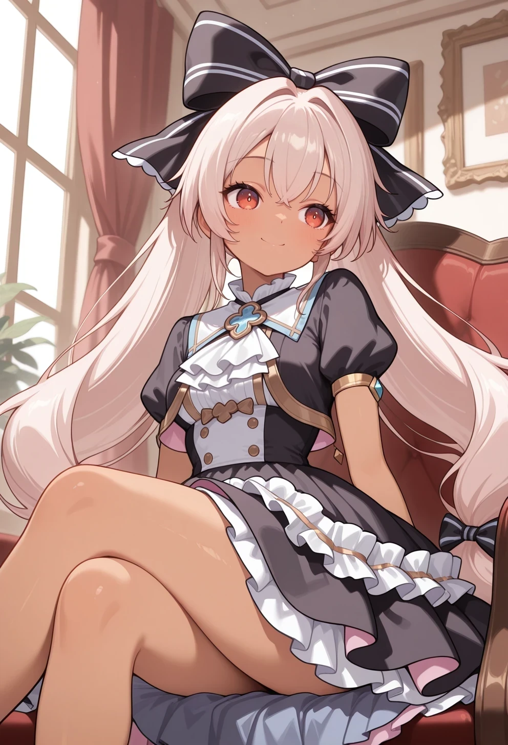 hair bow,black bow,twintails,dress,frills,pink petticoat,Uniform: