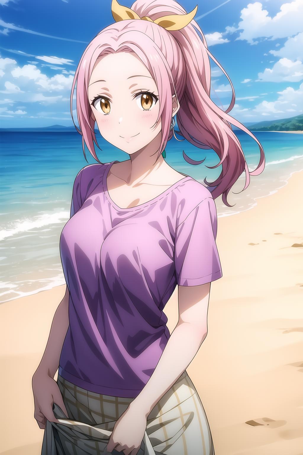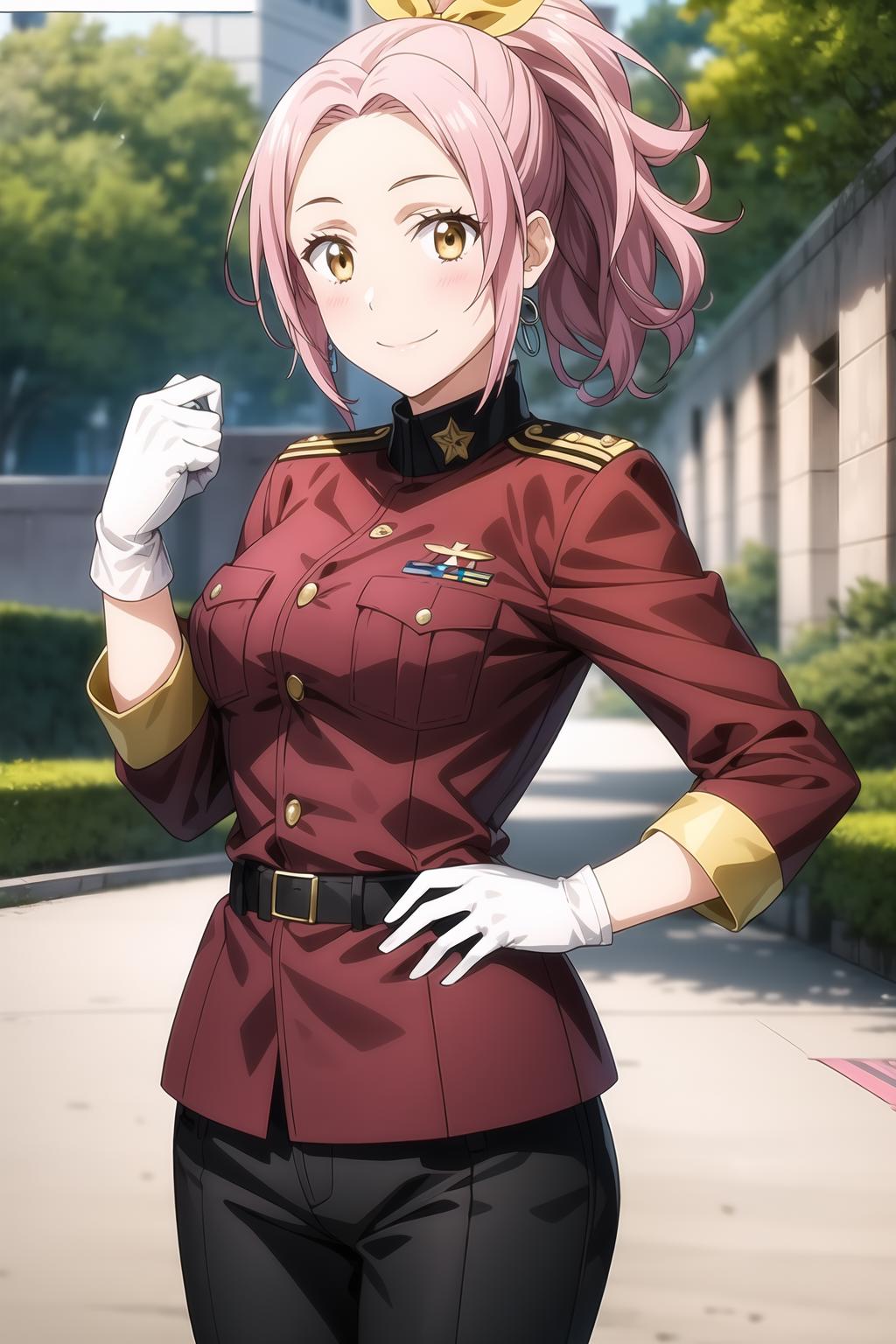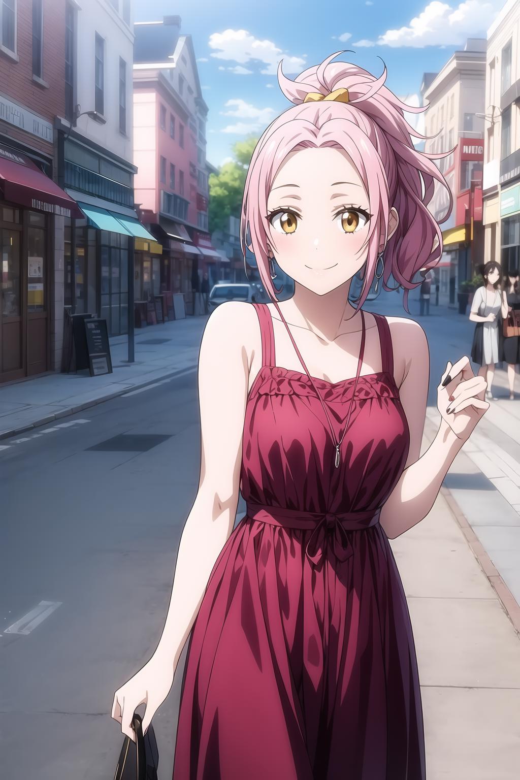 pink hair, ponytail, ember eyes