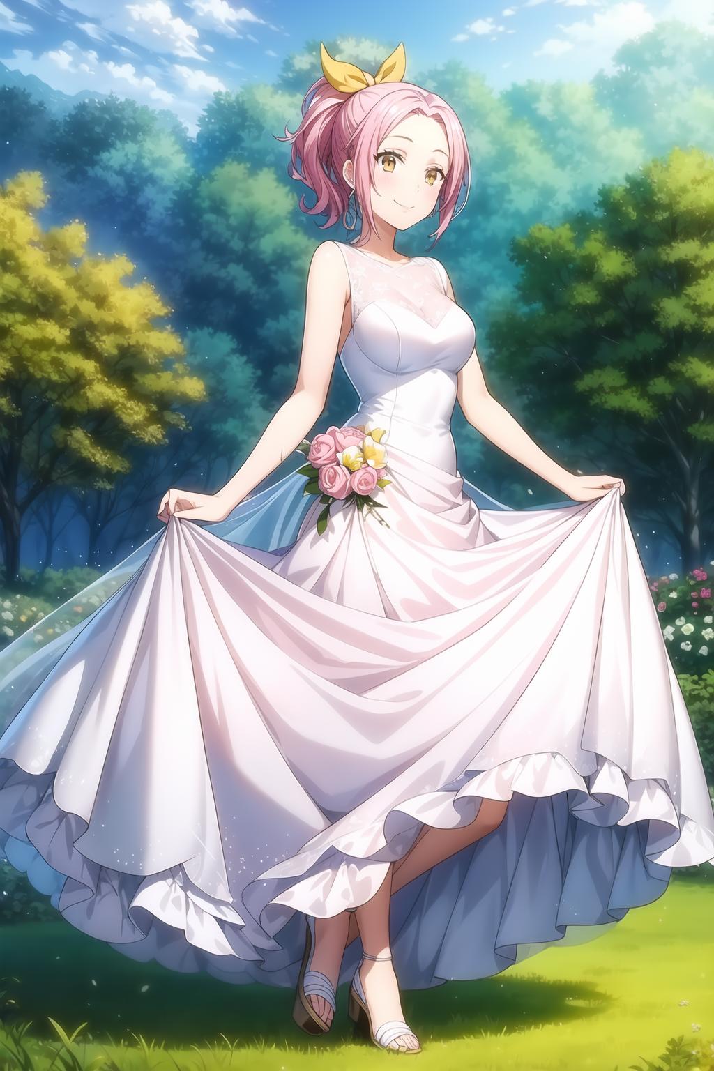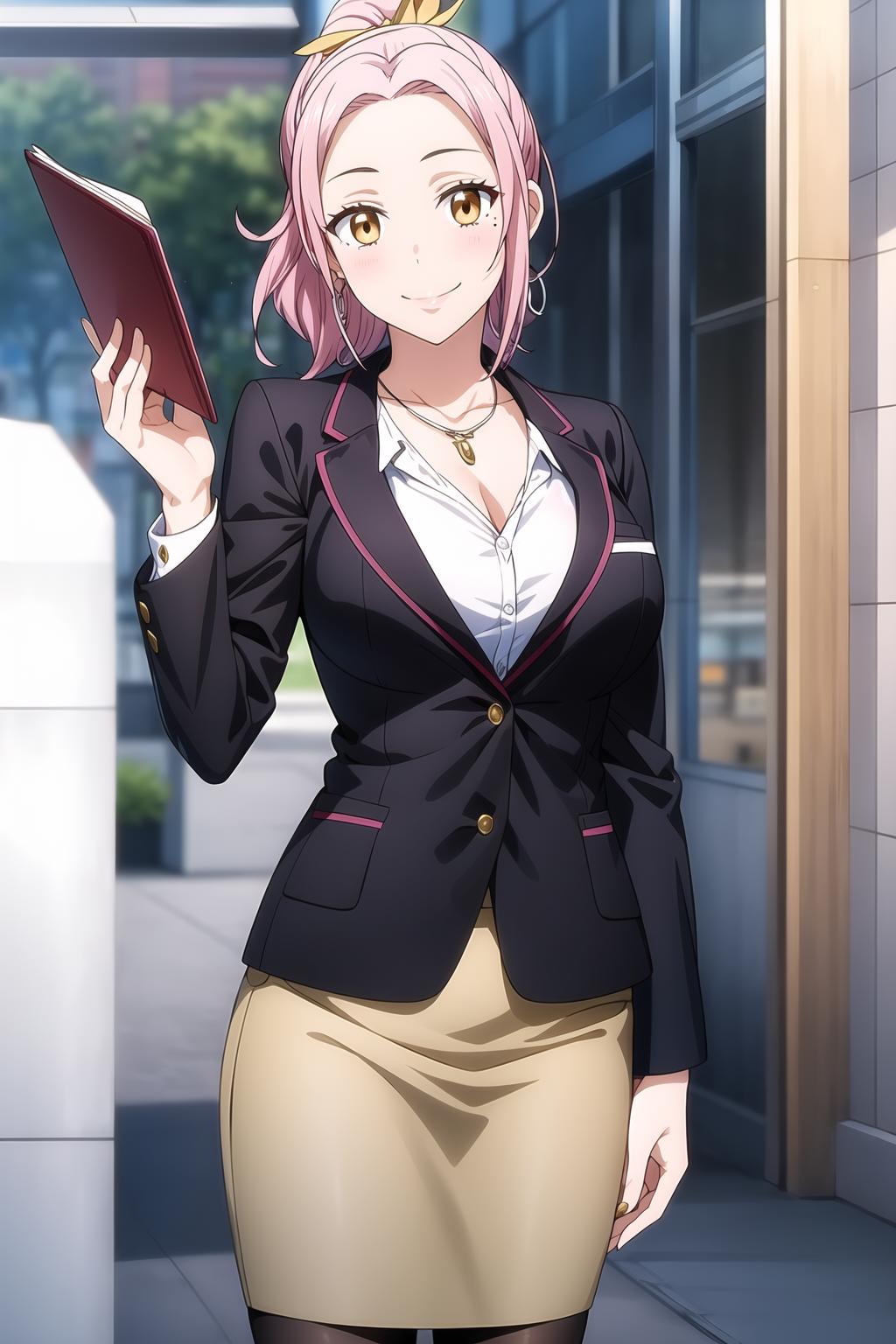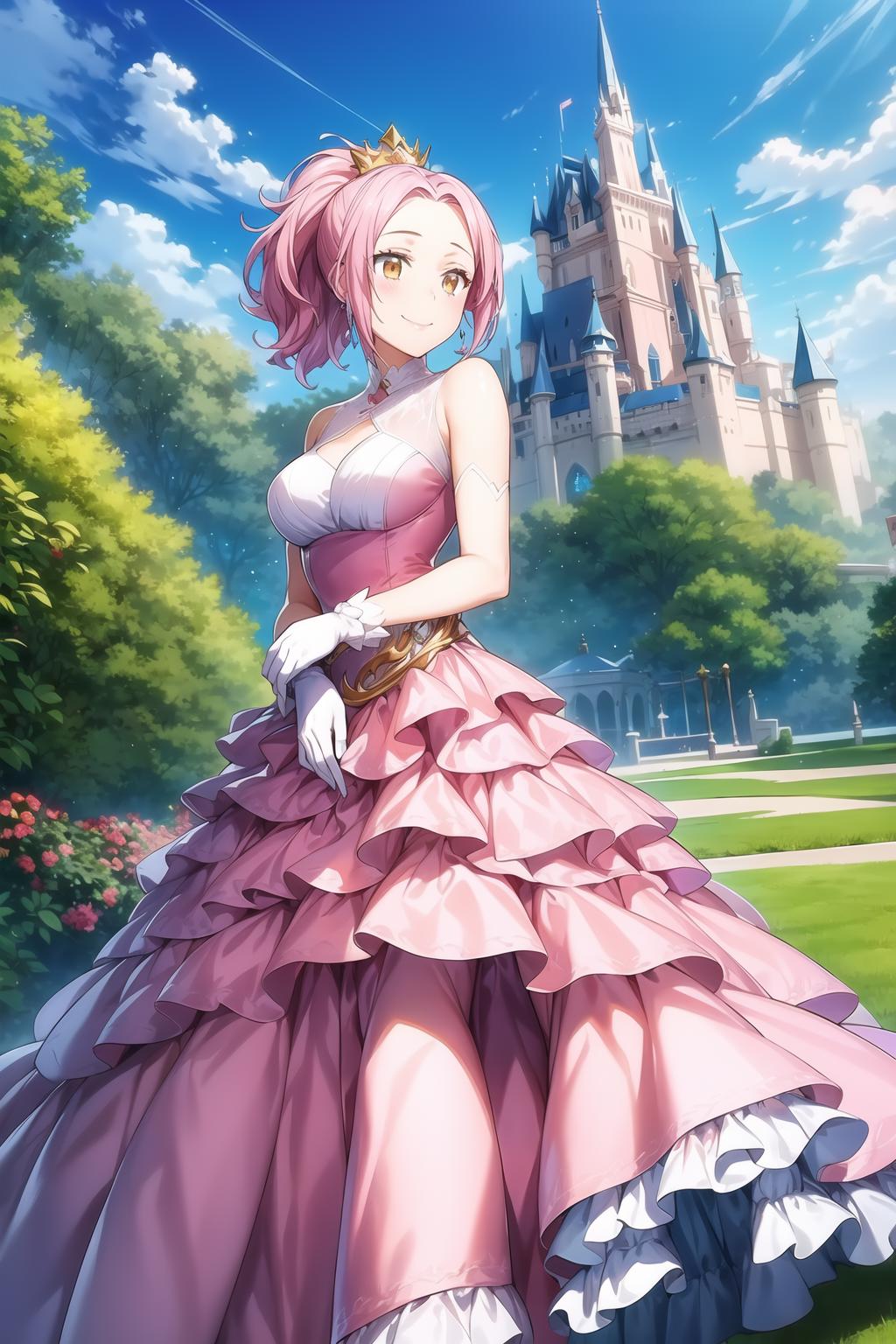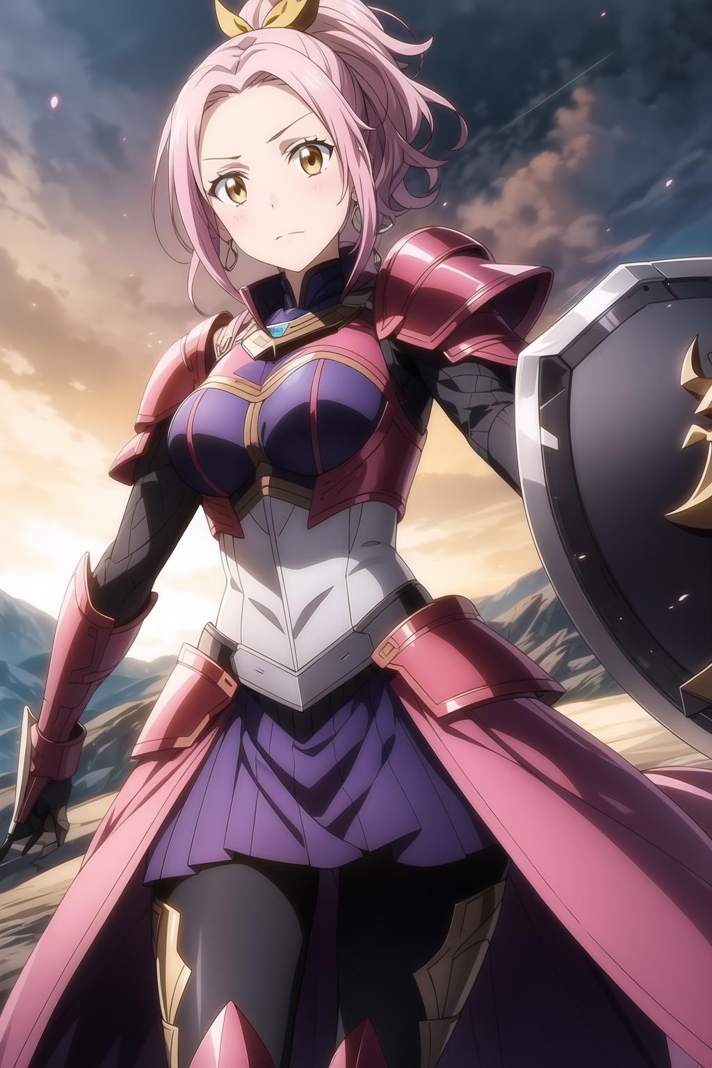 pink hair, ponytail, ember eyes