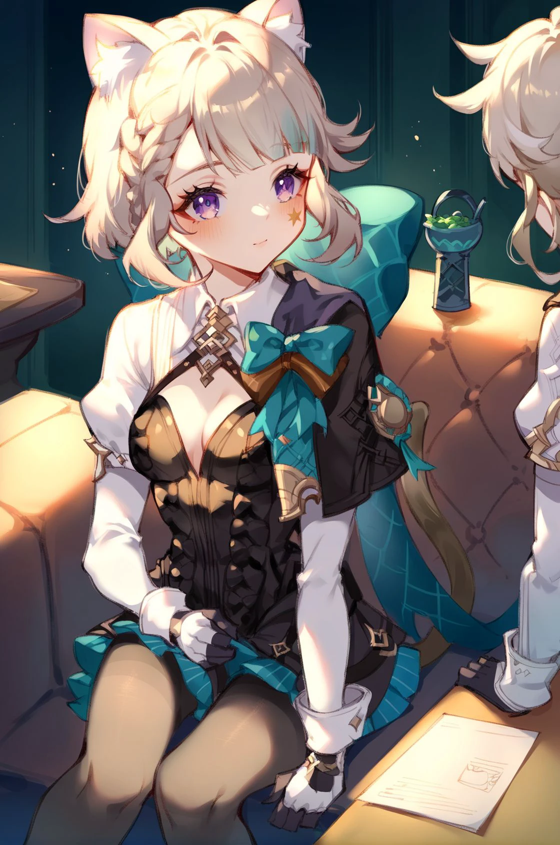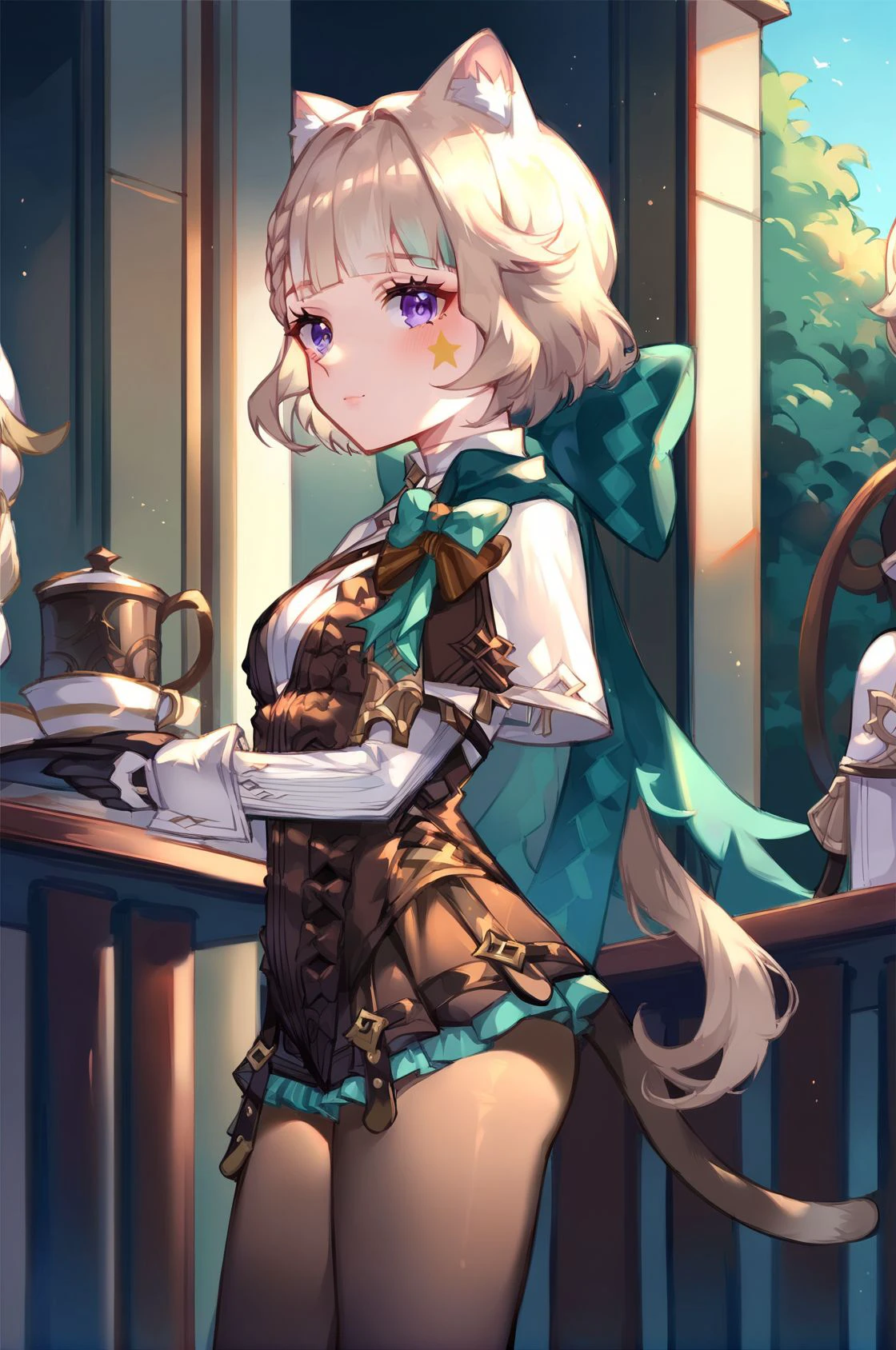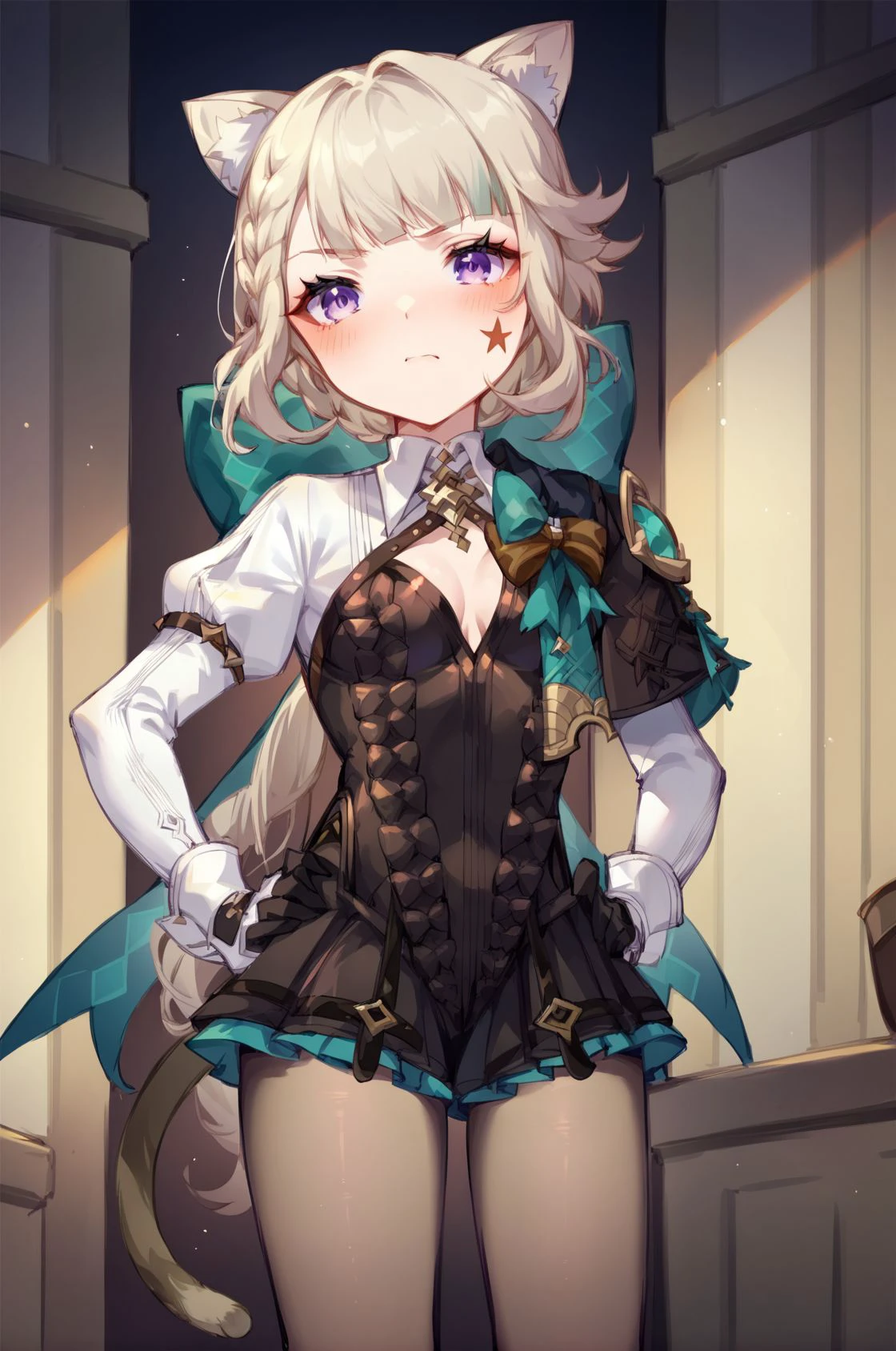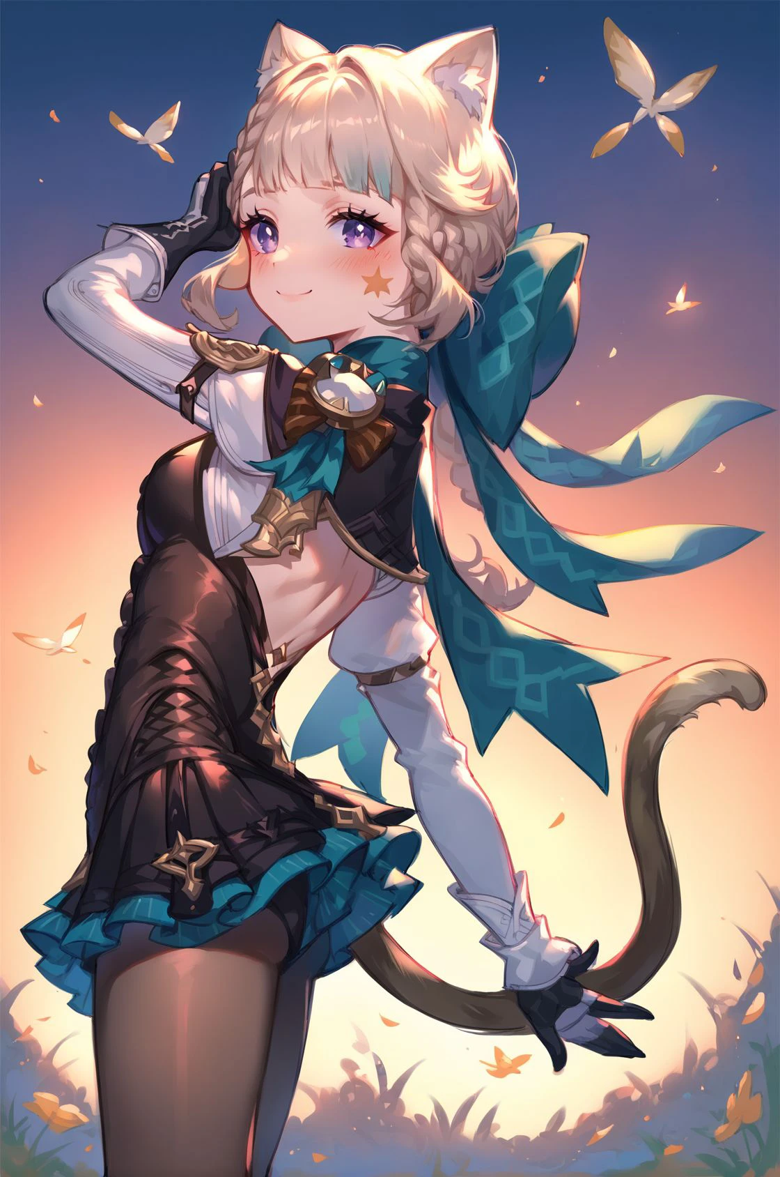 LoRA responds to the tag "lynette". Recommended tags for more consistency: cat ears, cat tail, purple eyes, frills, star \(symbol\)