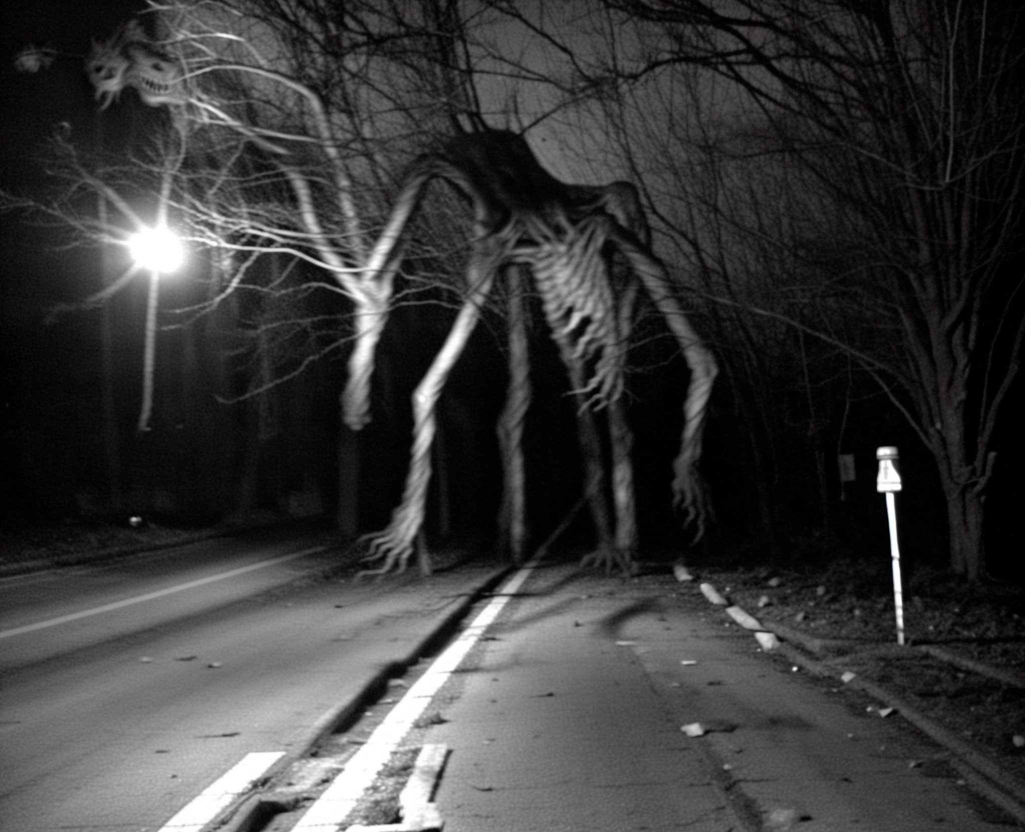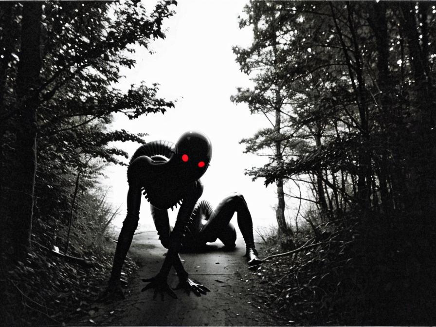 It is recommended to write the following tokens: deathia, blurry, dimmed, lowkey, night, scary, horror, low quality, flashlight, monster.
