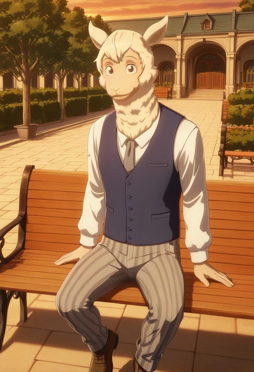 Tem, 1boy, mature male, male, anthro, alpaca, animal ears, brown eyes, light skin, white wool