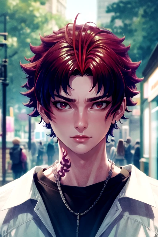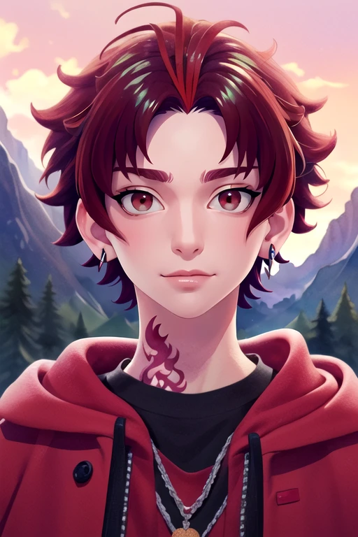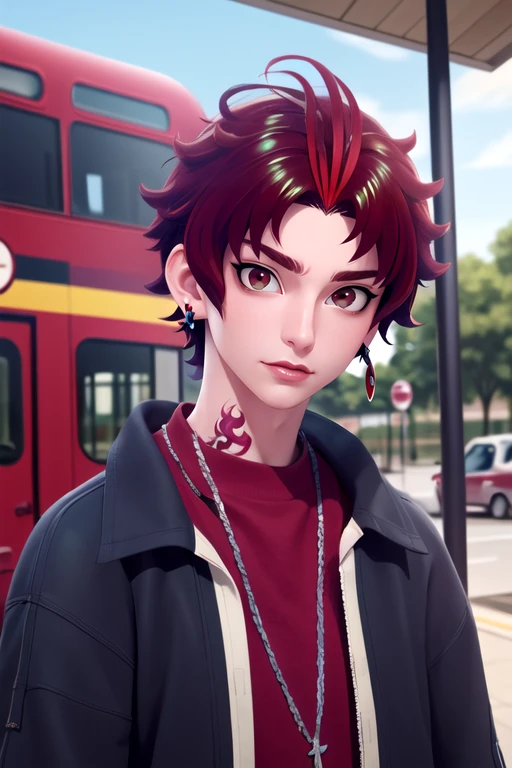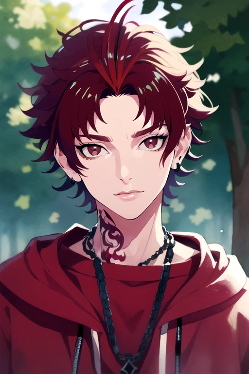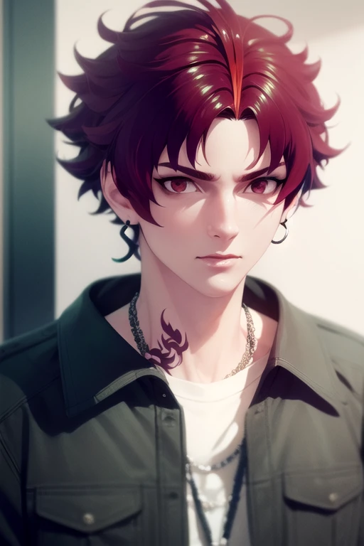 allen_sugasano, red hair, red eyes, short hair, tattoo