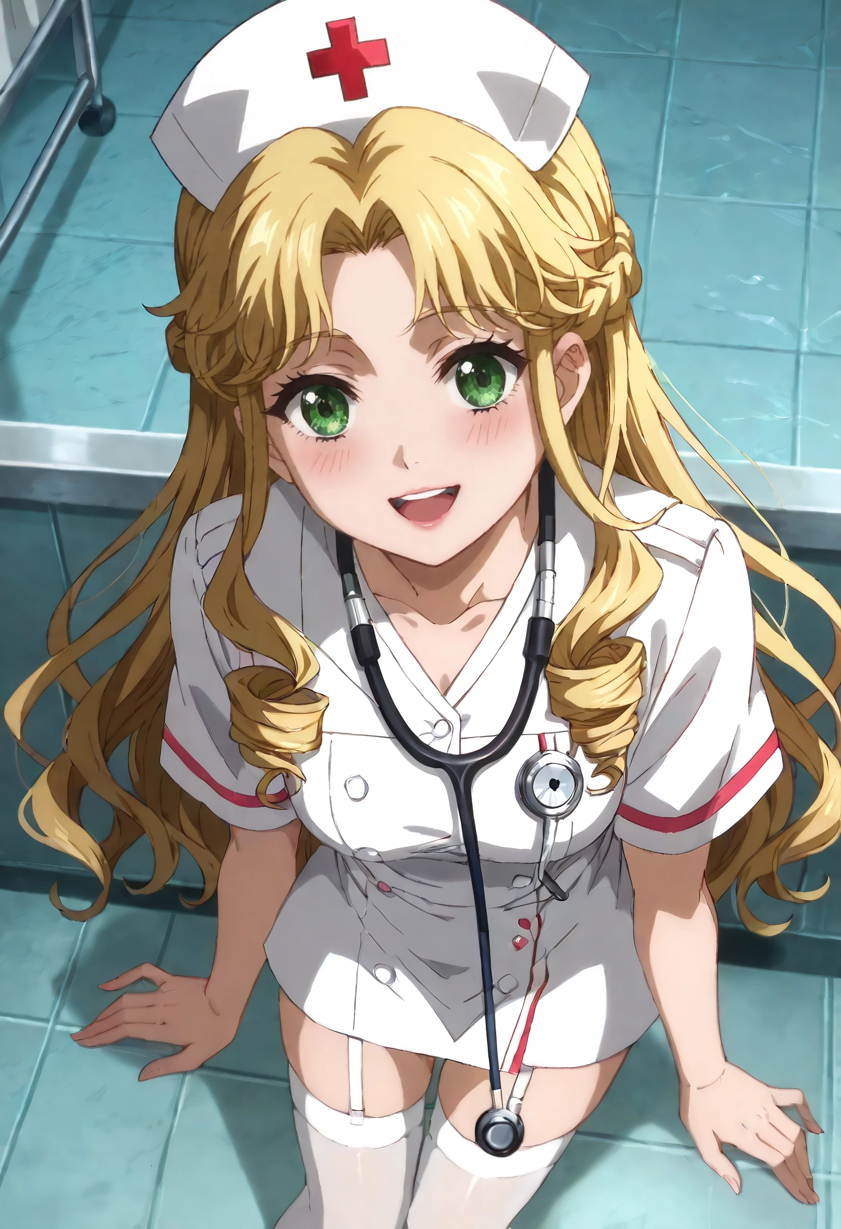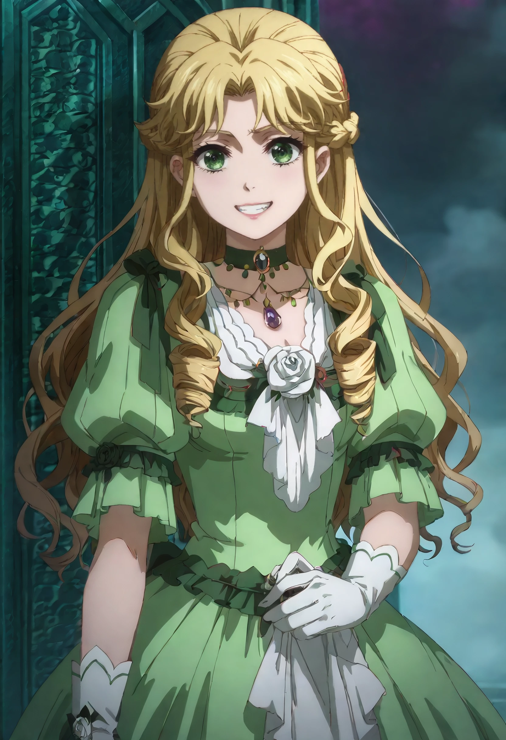 GZZAudrey, long hair, blonde hair, green eyes, braid, drill hair, drill sidelocks, parted bangs, sidelocks,
