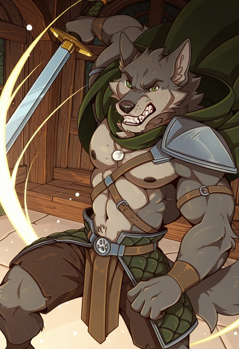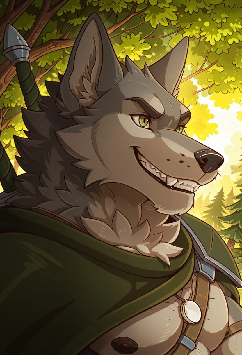 Reinforcement Prompts: "furry, wolf boy, tail, green eyes, muscular, large pectorals"