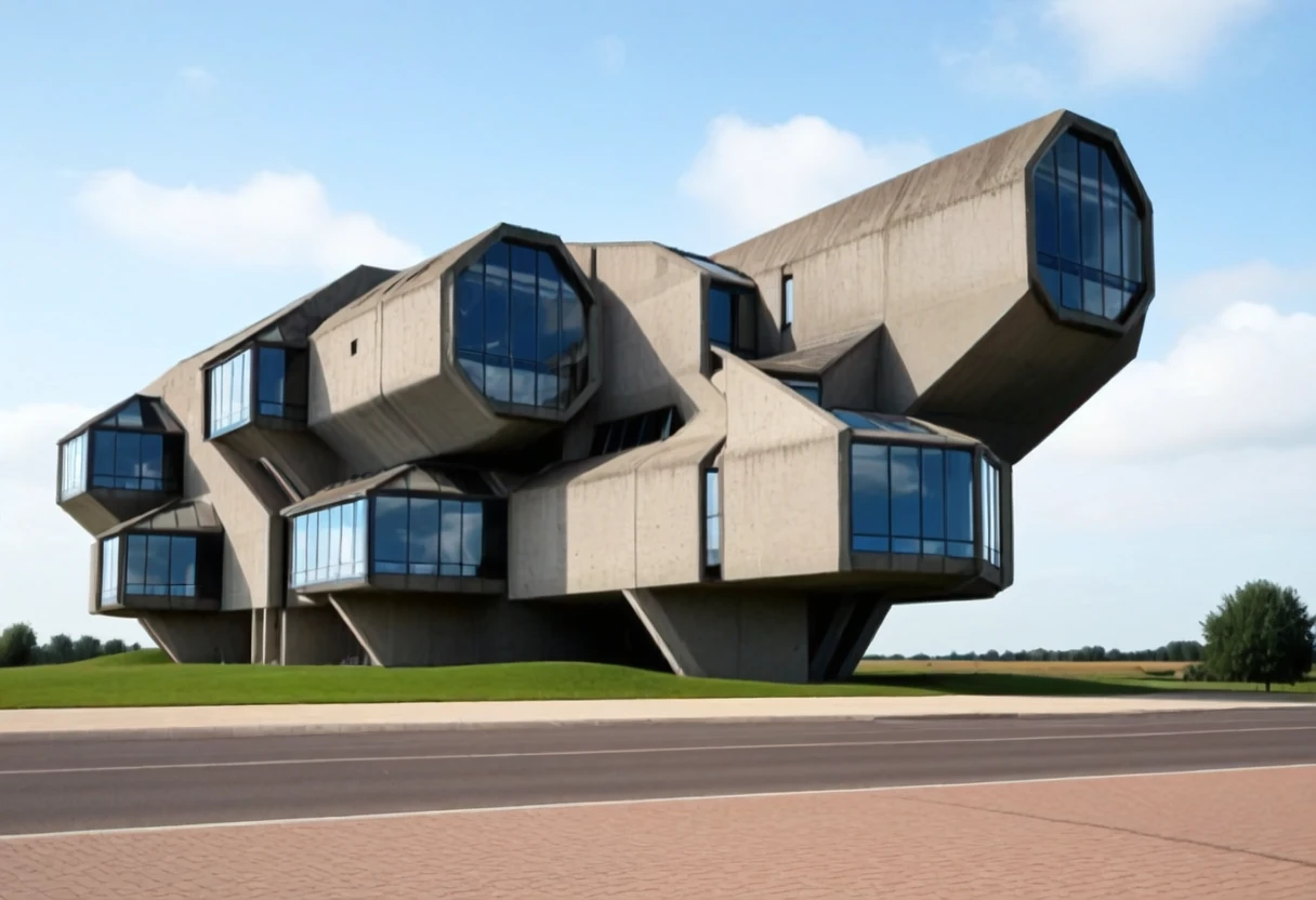 This is an SDXL lora for Polygon style Brutalist buildings. By Polygon I am referring to polygon like shapes to buildings, such as a 26 sided shape on top of a tower or something that looks like a mix between angular and curved and boxy shapes combined into one style as examples. Similar shapes can be found in honeycomb shapes as well.