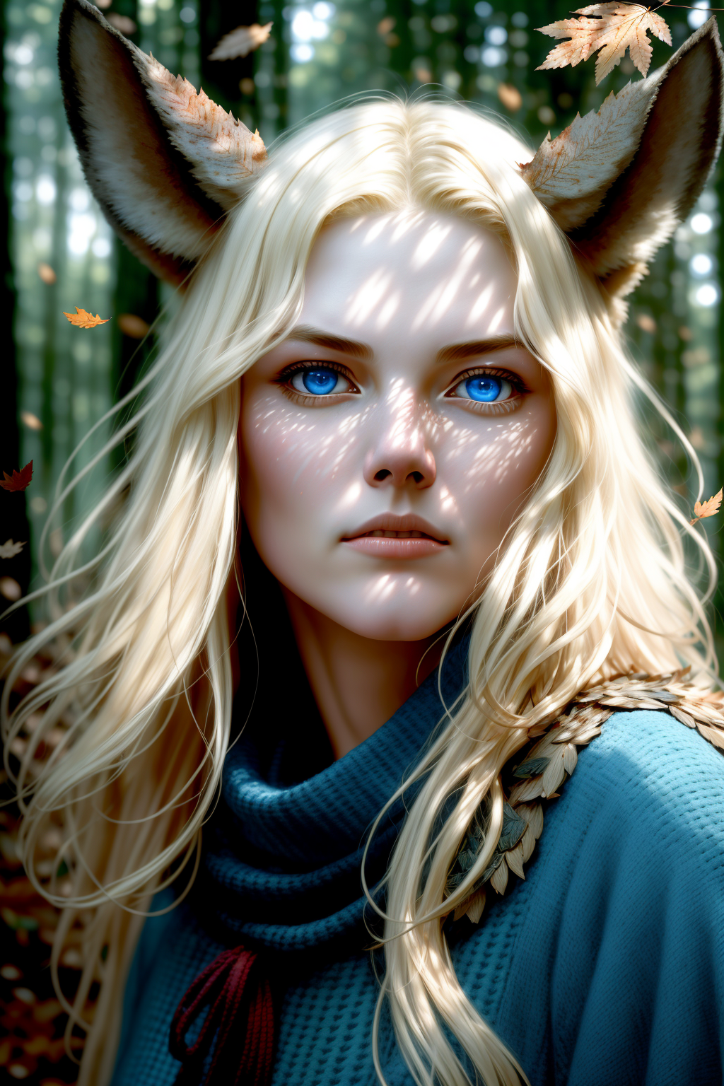 Simone should have blonde hair and blue eyes naturally, but she can easily get a makeover with good prompting!