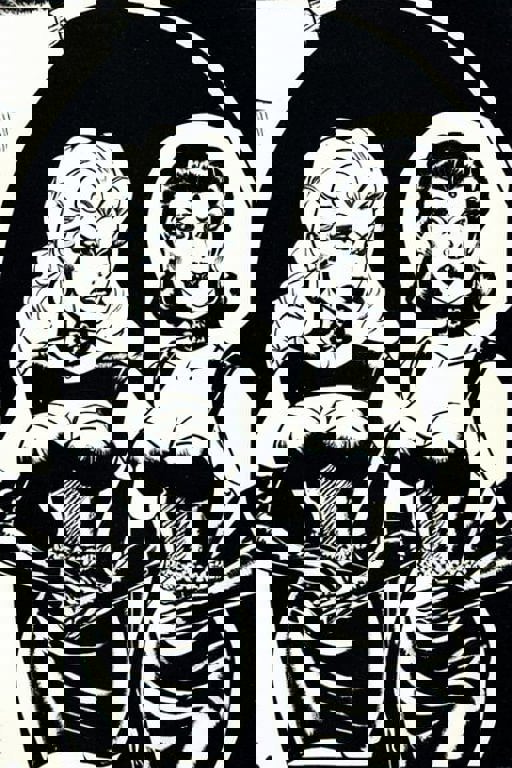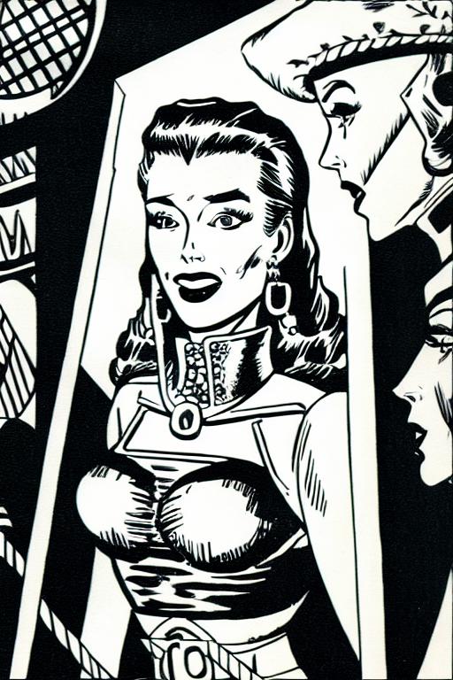 This model is trained on vintage ?????? from the 1940s to the end of the early 1960s. It features a black-and-white ink style that reflects the comic illustration styles of that time.