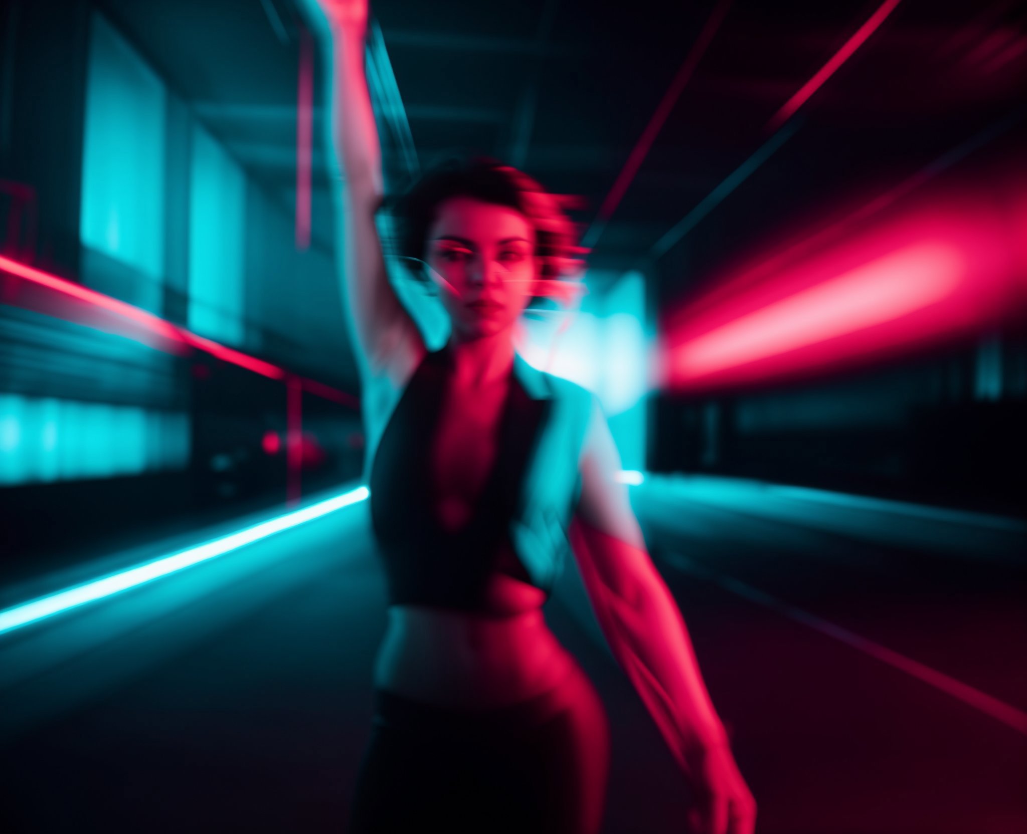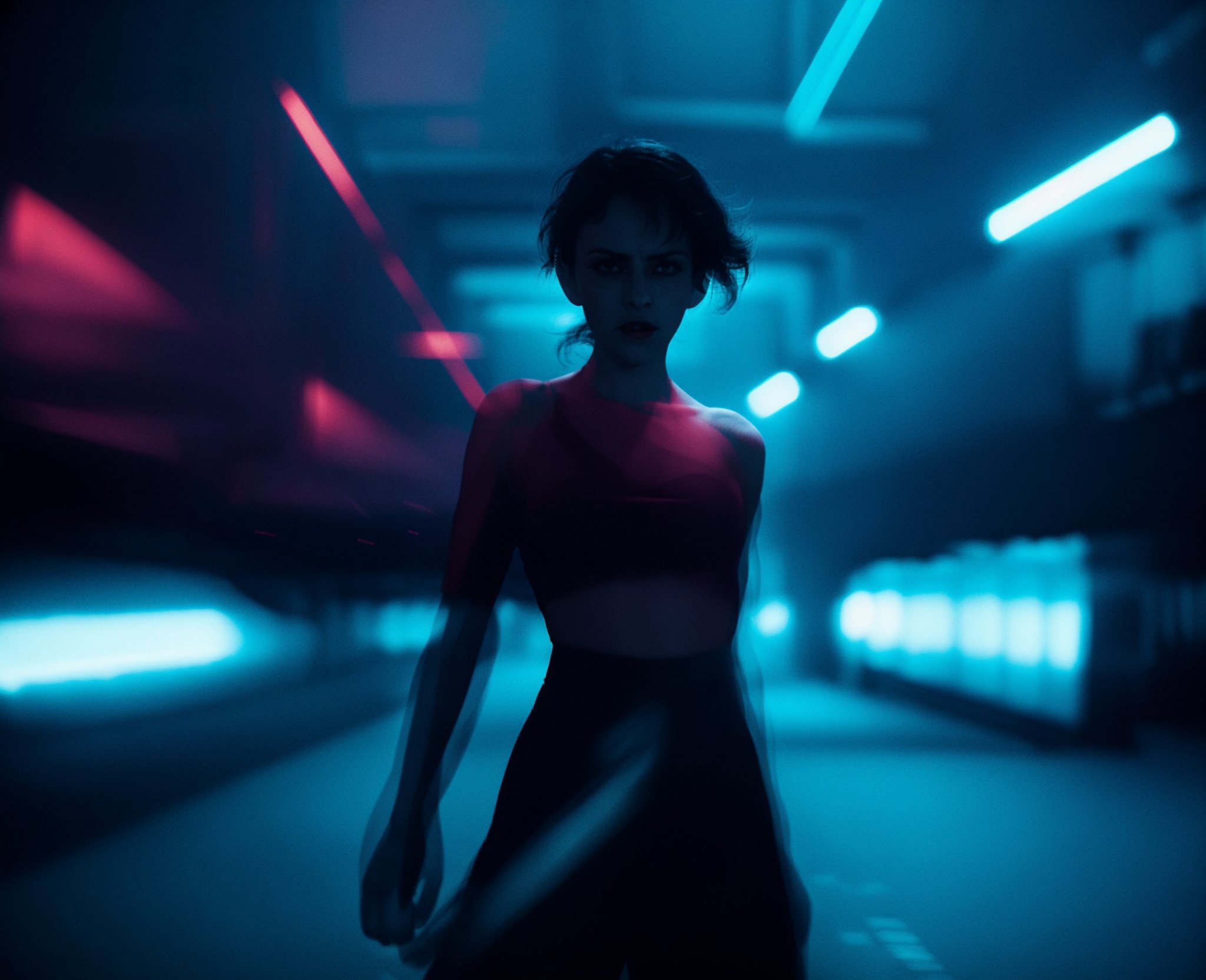 It is recommended to write the following tokens: motion blur, blurry, low shatterspeed, defocus, slate gray, epic lighting, flares, highlights.