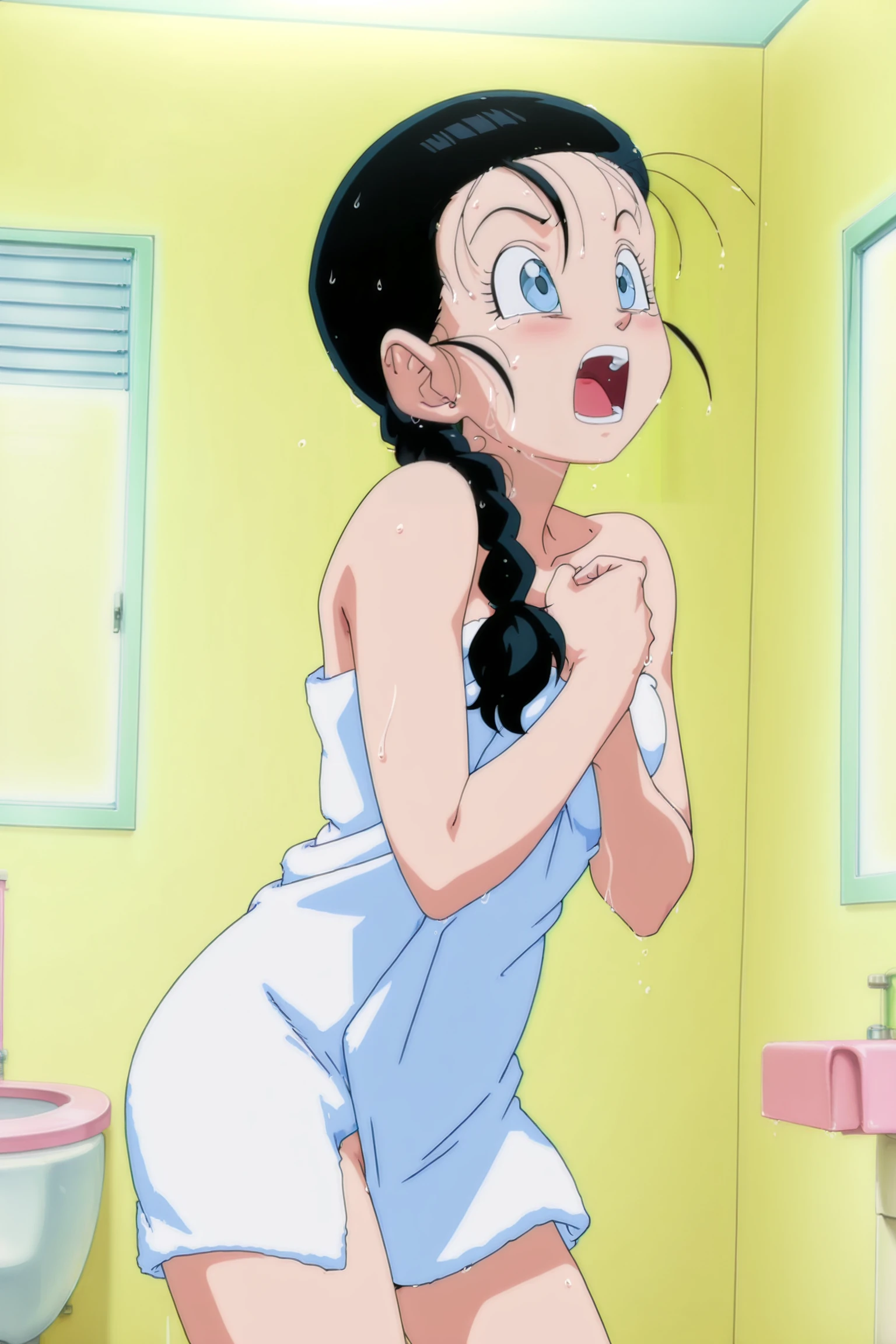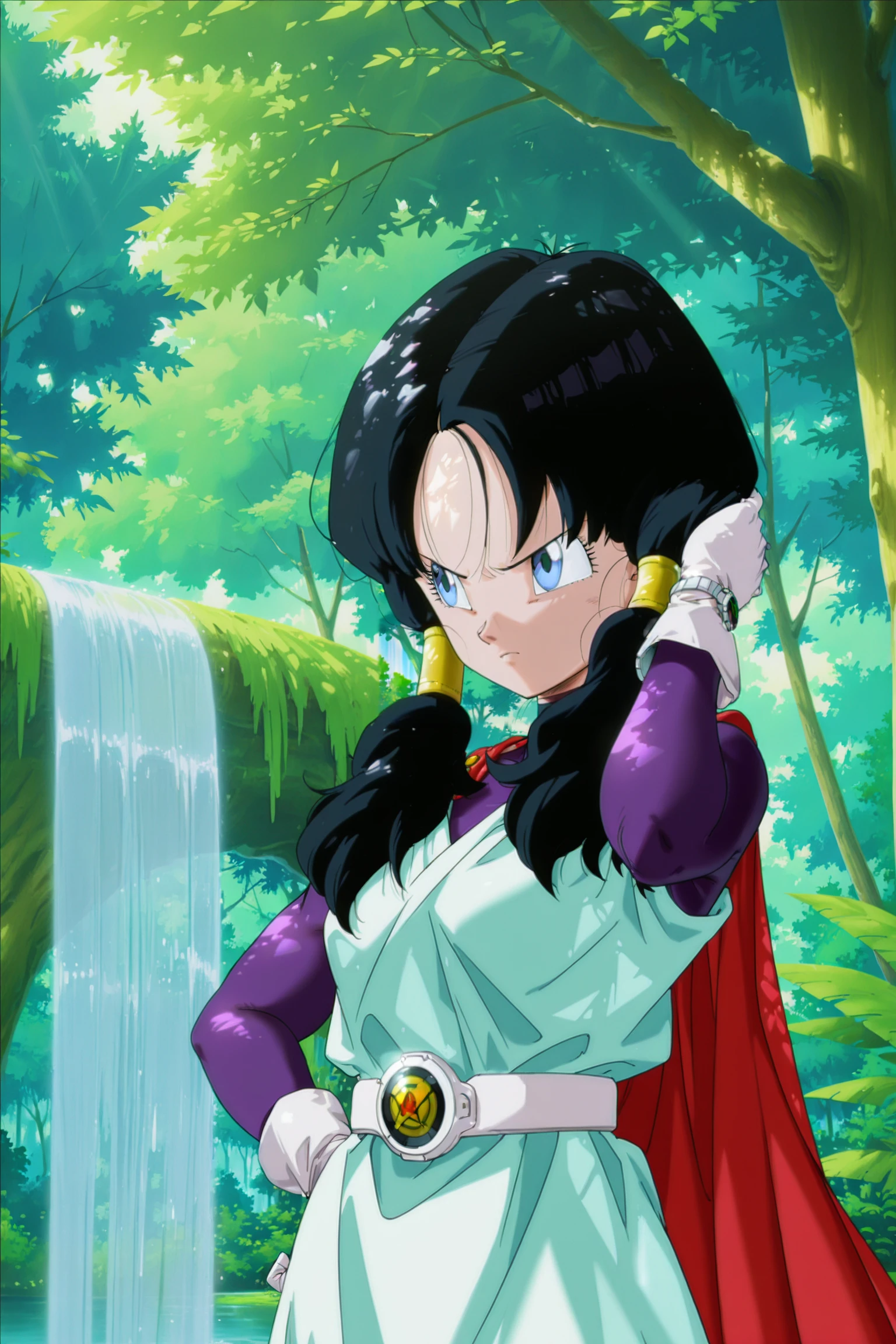 videl, dragon ball gt, long hair, blue eyes, black hair, braided ponytail, hair pulled back,