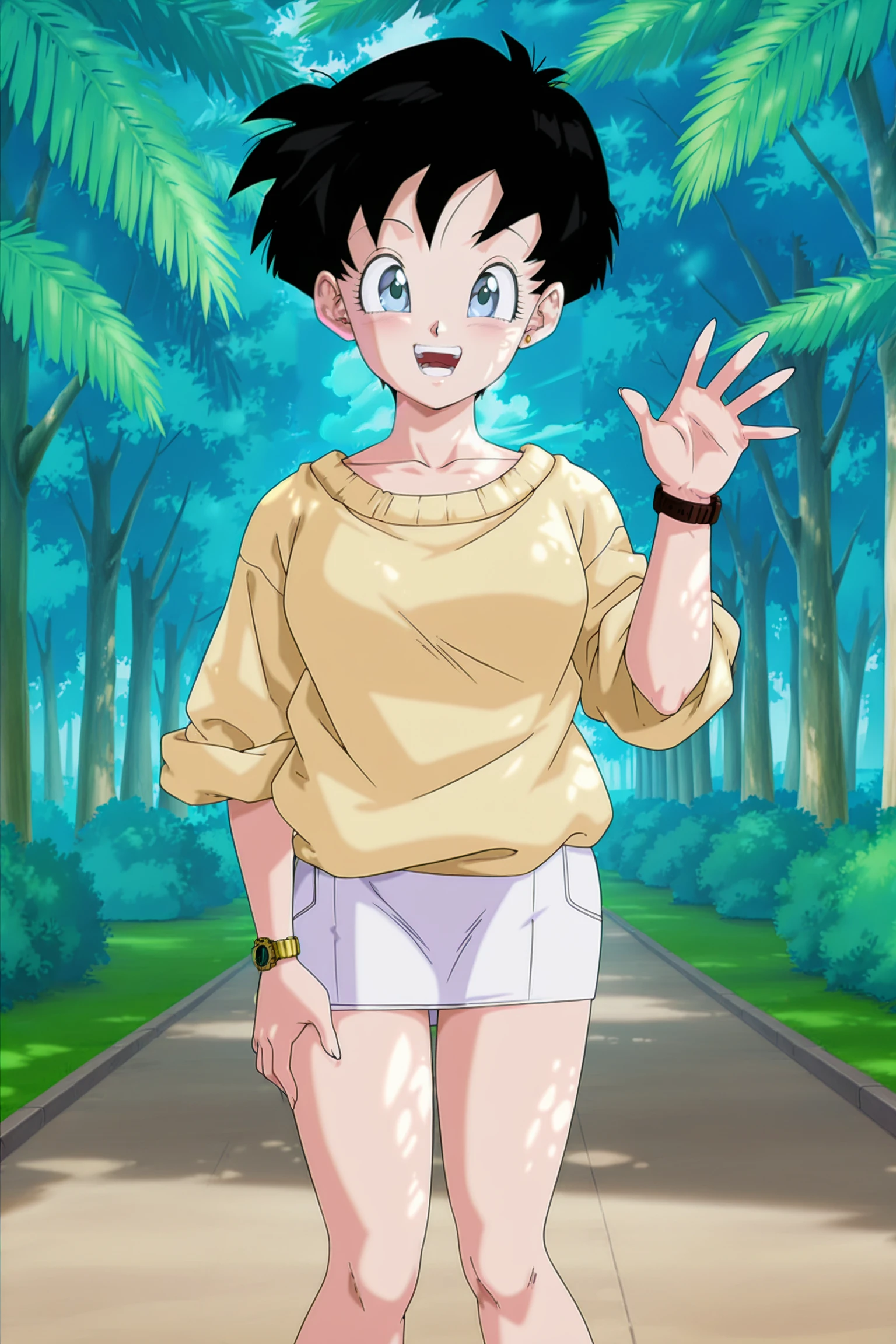 videl, very short hair, black hair, spiked hair, blue eyes,
