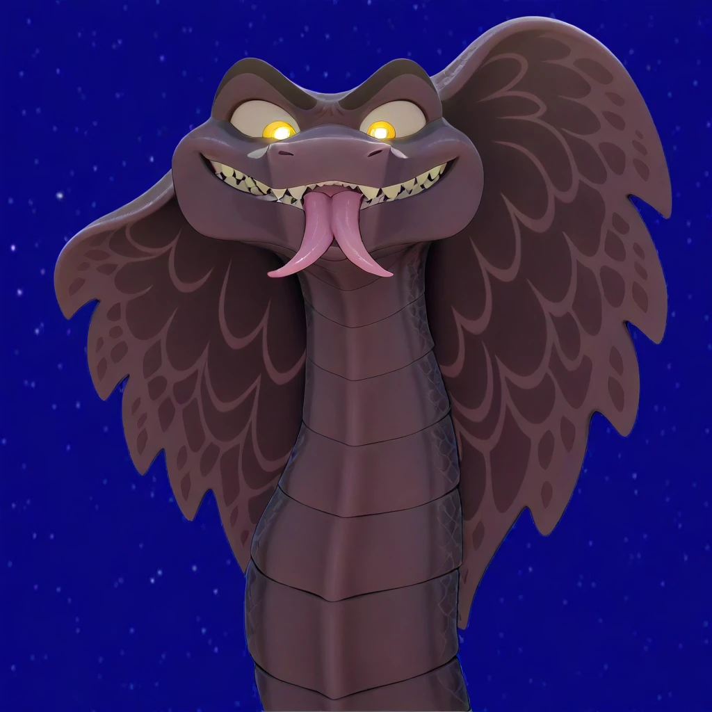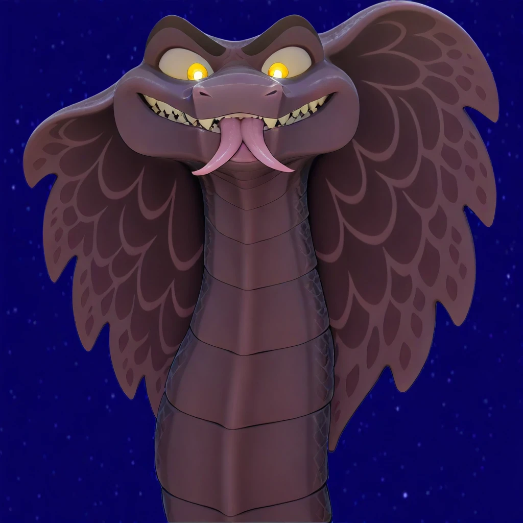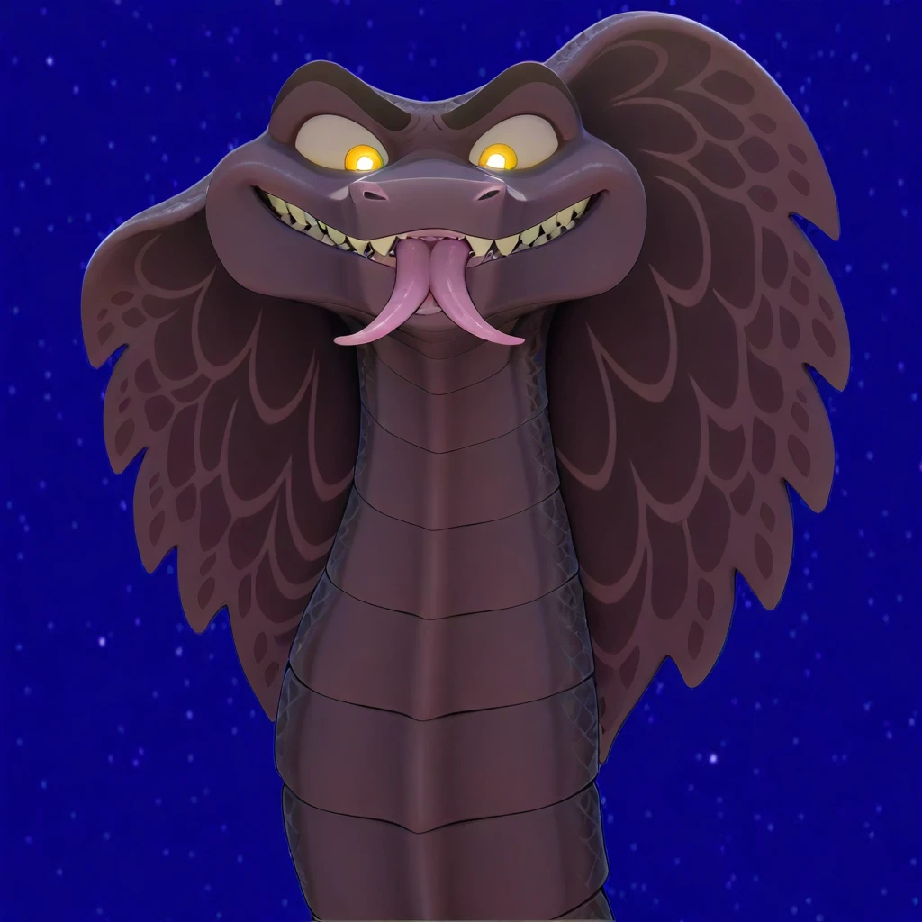 saladin, sahara 2017 movie , snake, cobra, HD, hypnotic yellow eyes, reptile, snake hood, white sclerals, yellow iris, white shining pupils, dark-violet body, dark-violet scales, black body, black scales, two tone scales, solo, dark body markings long body, fangs, forked tongue, night desert, male,