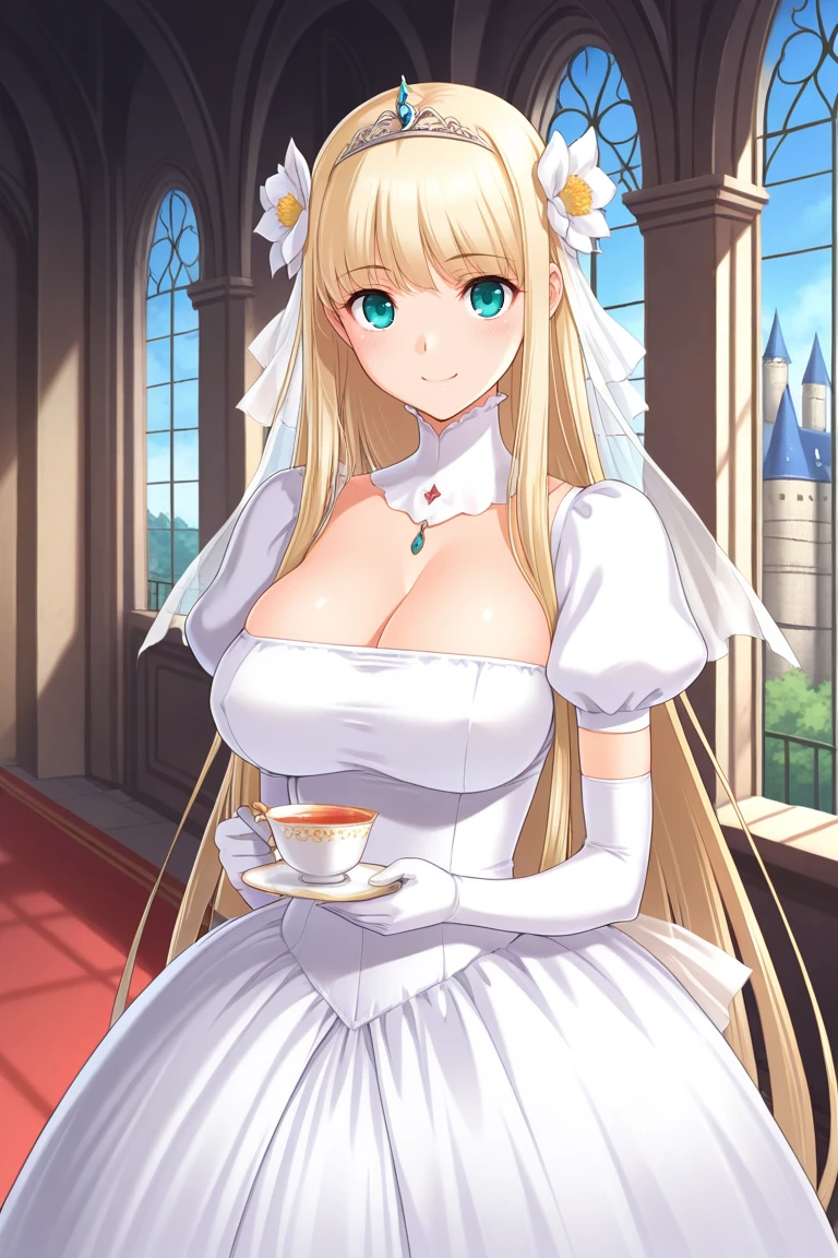 Juliet-hime, blond hair, very long hair, bangs, aqua eyes, large breasts,