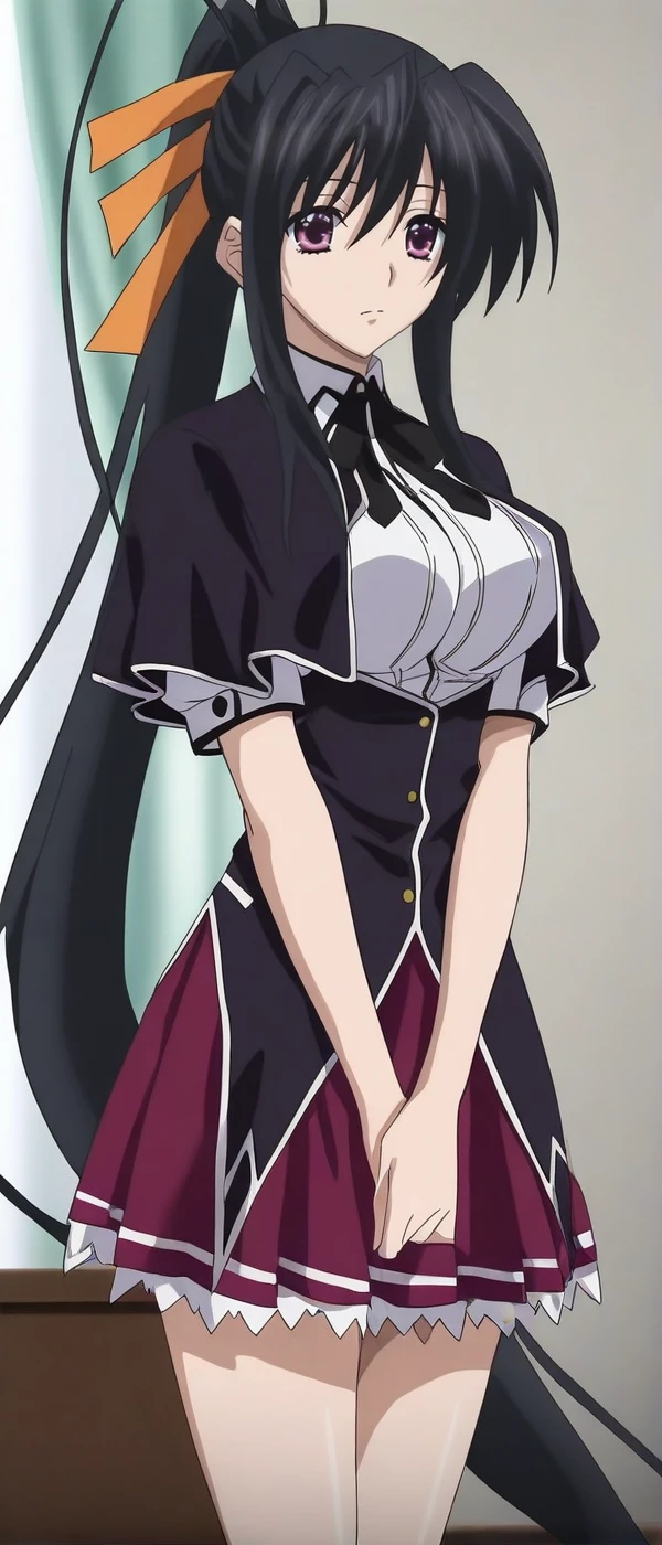 skirt, school uniform, shirt, white shirt, capelet, black capelet, long sleeves, red skirt, anime coloring,