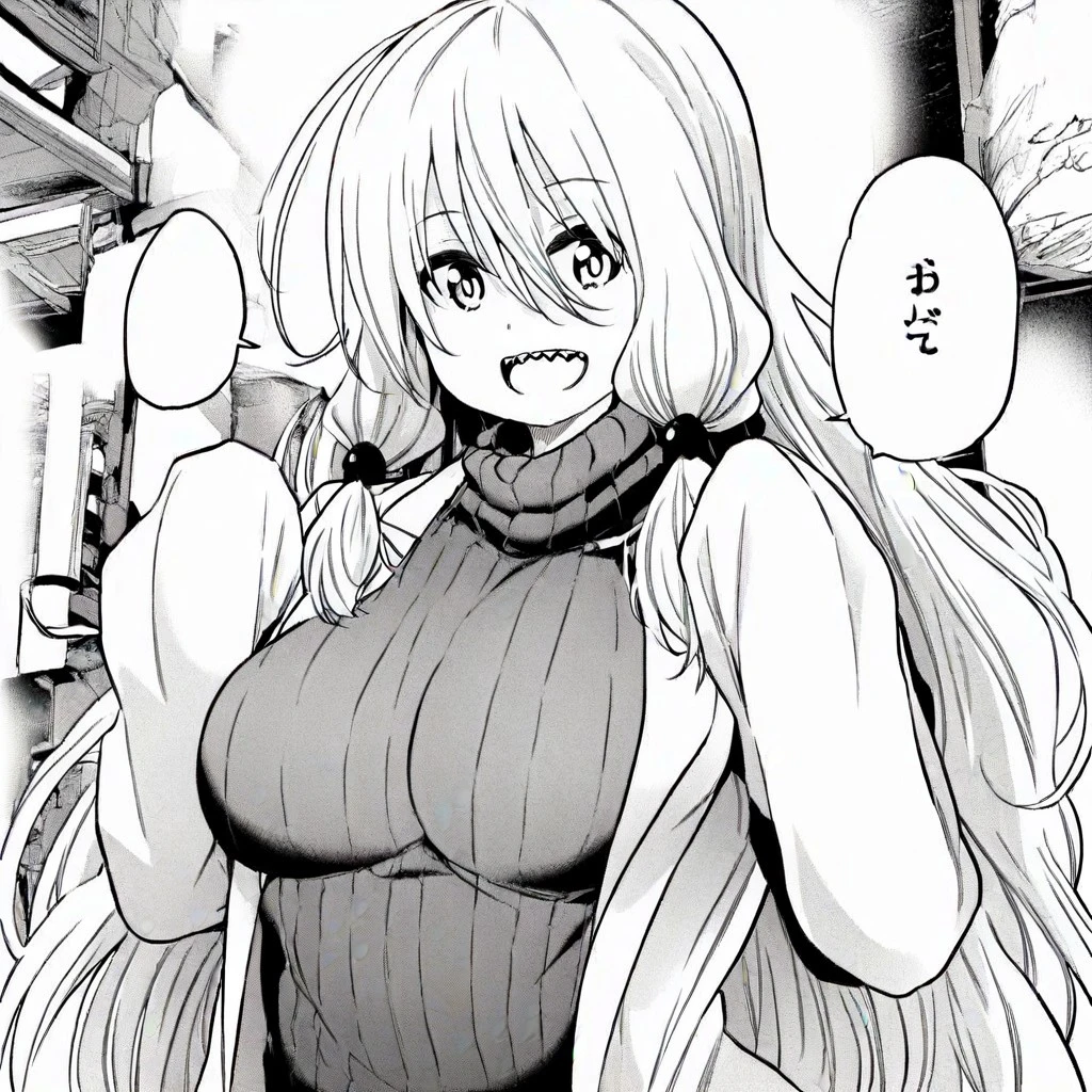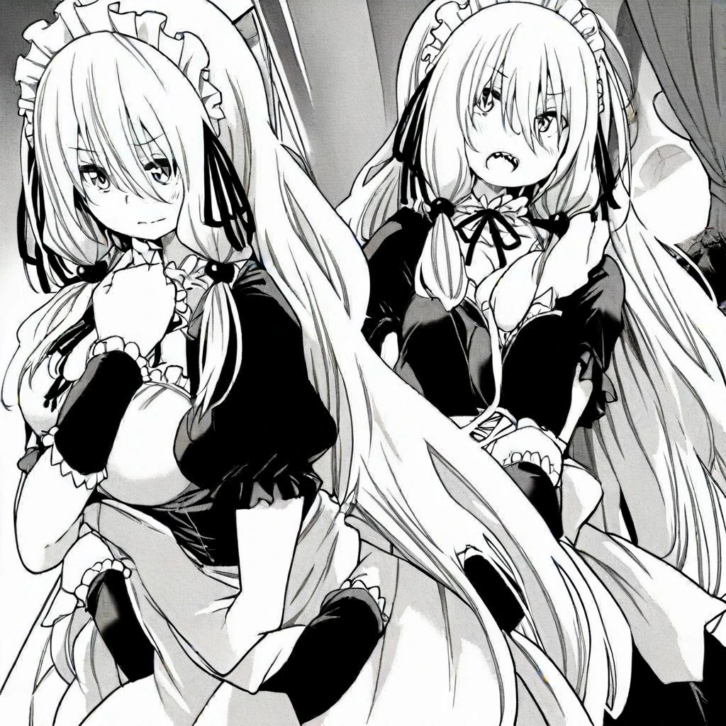 Appearance: 1girl, monochrome, manga, Nanjou_NKNSG,bangs, hair between eyes, long hair, very long hair, white hair, hair ornament, hair beads,