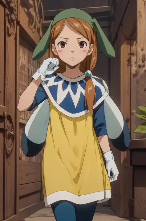 coco_ft, gloves, hat, yellow dress, white gloves, long hair, suit, edolas suit ..................................................................