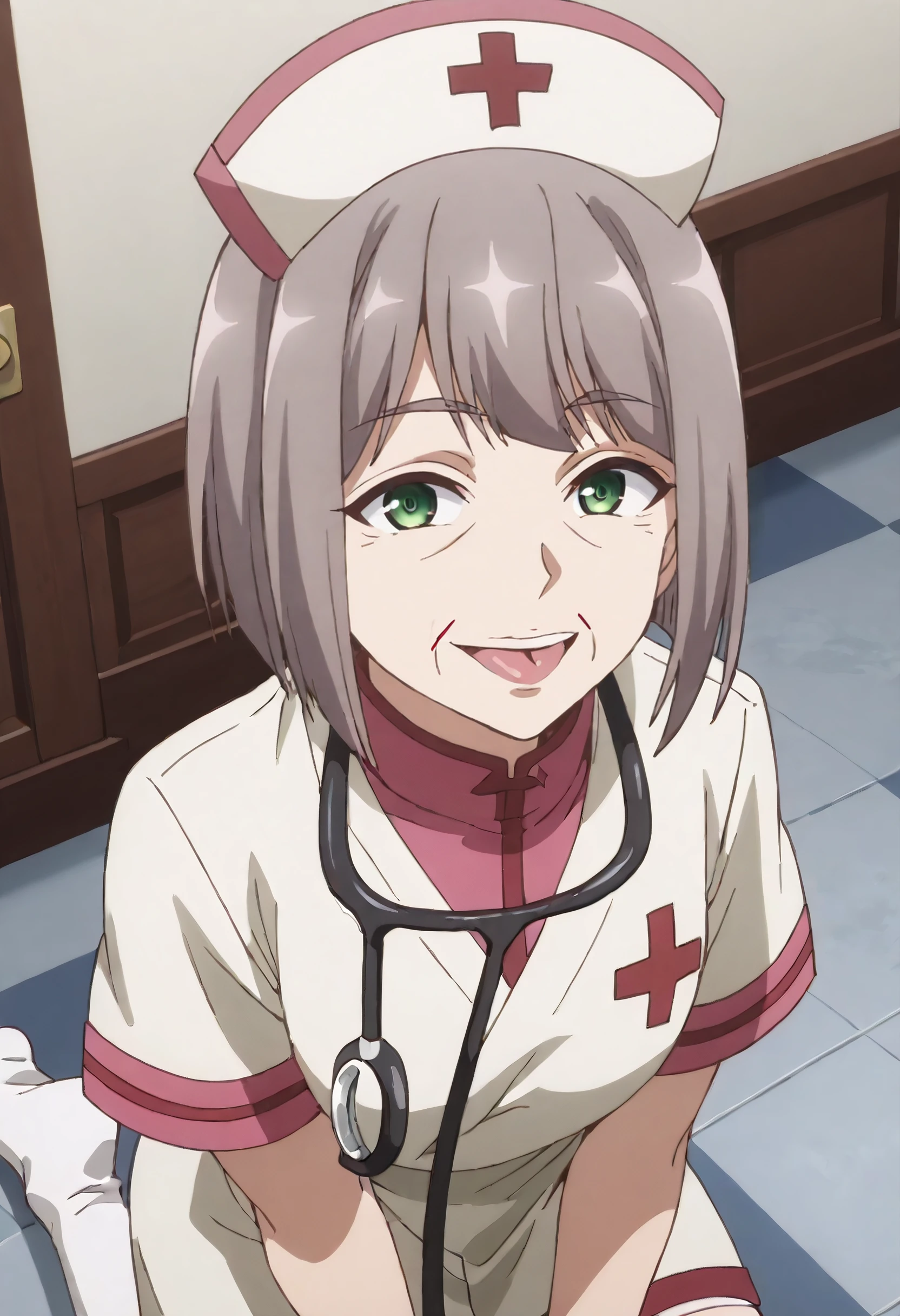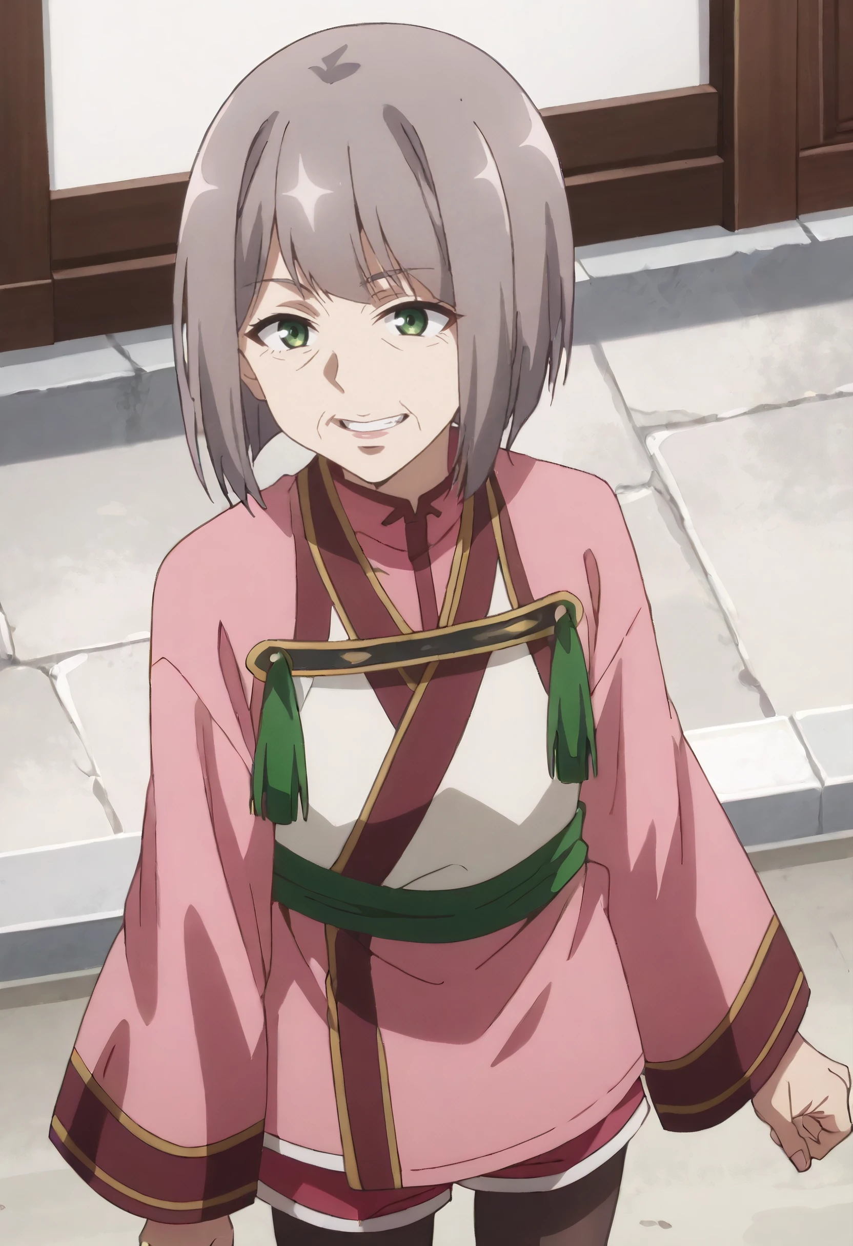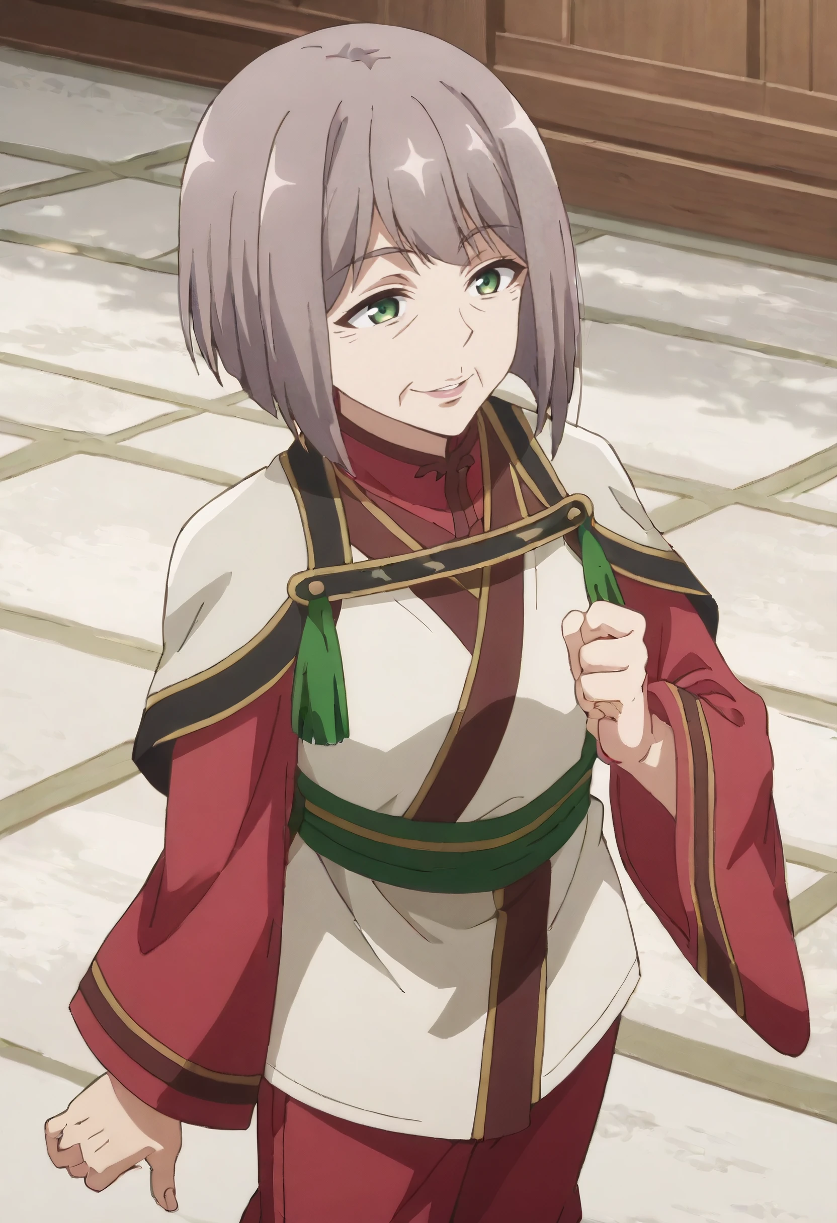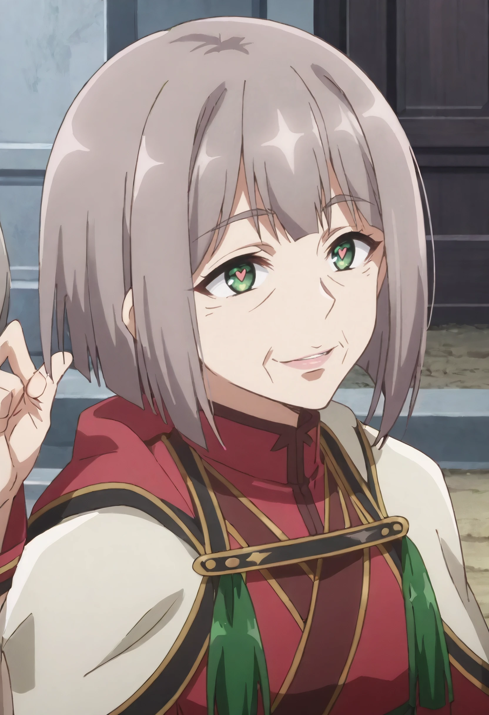 JHNYumite, short hair, grey hair, green eyes, bob cut, brown hair, old, old woman,